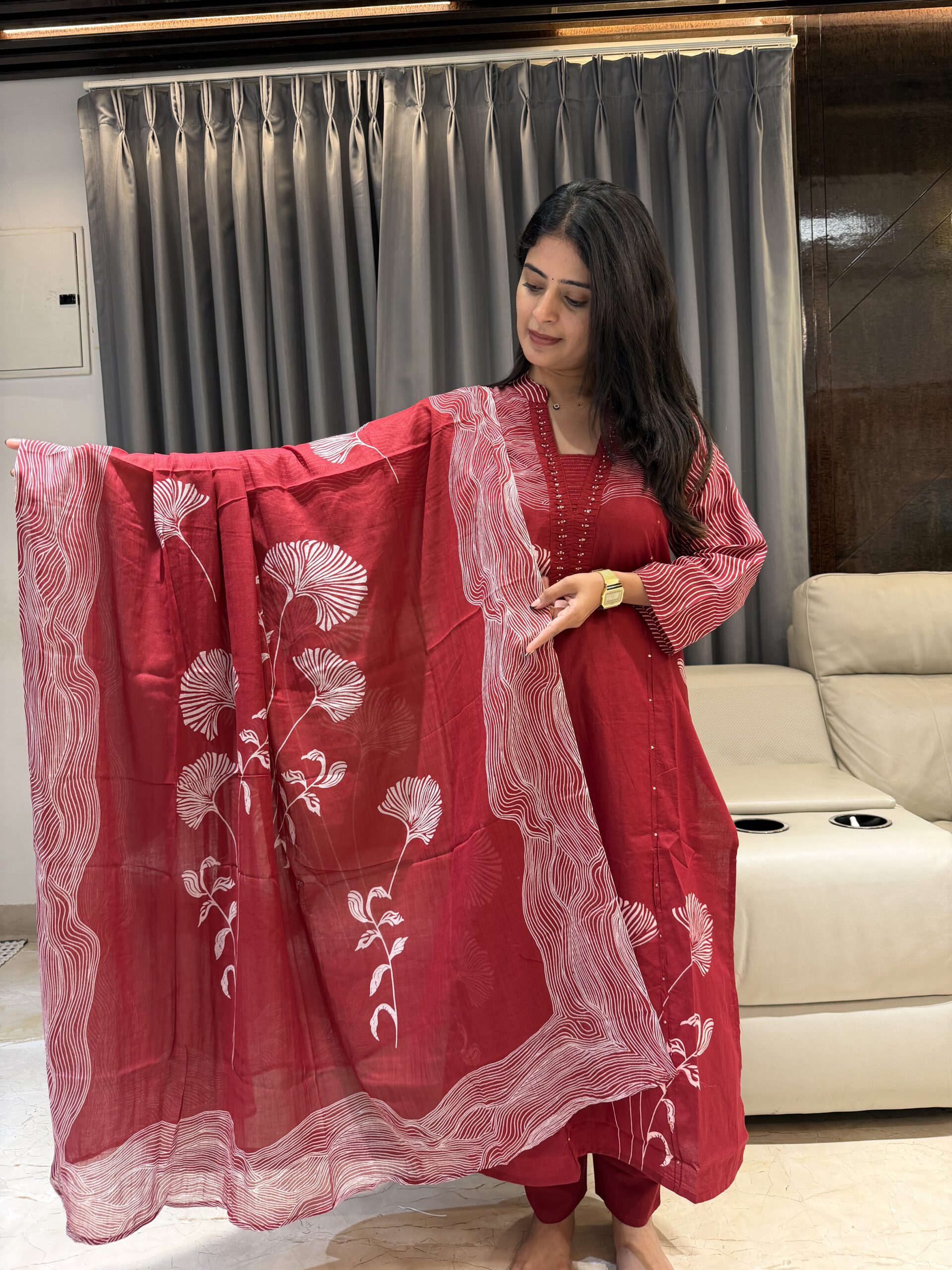 Dupatta pant set in pure cotton