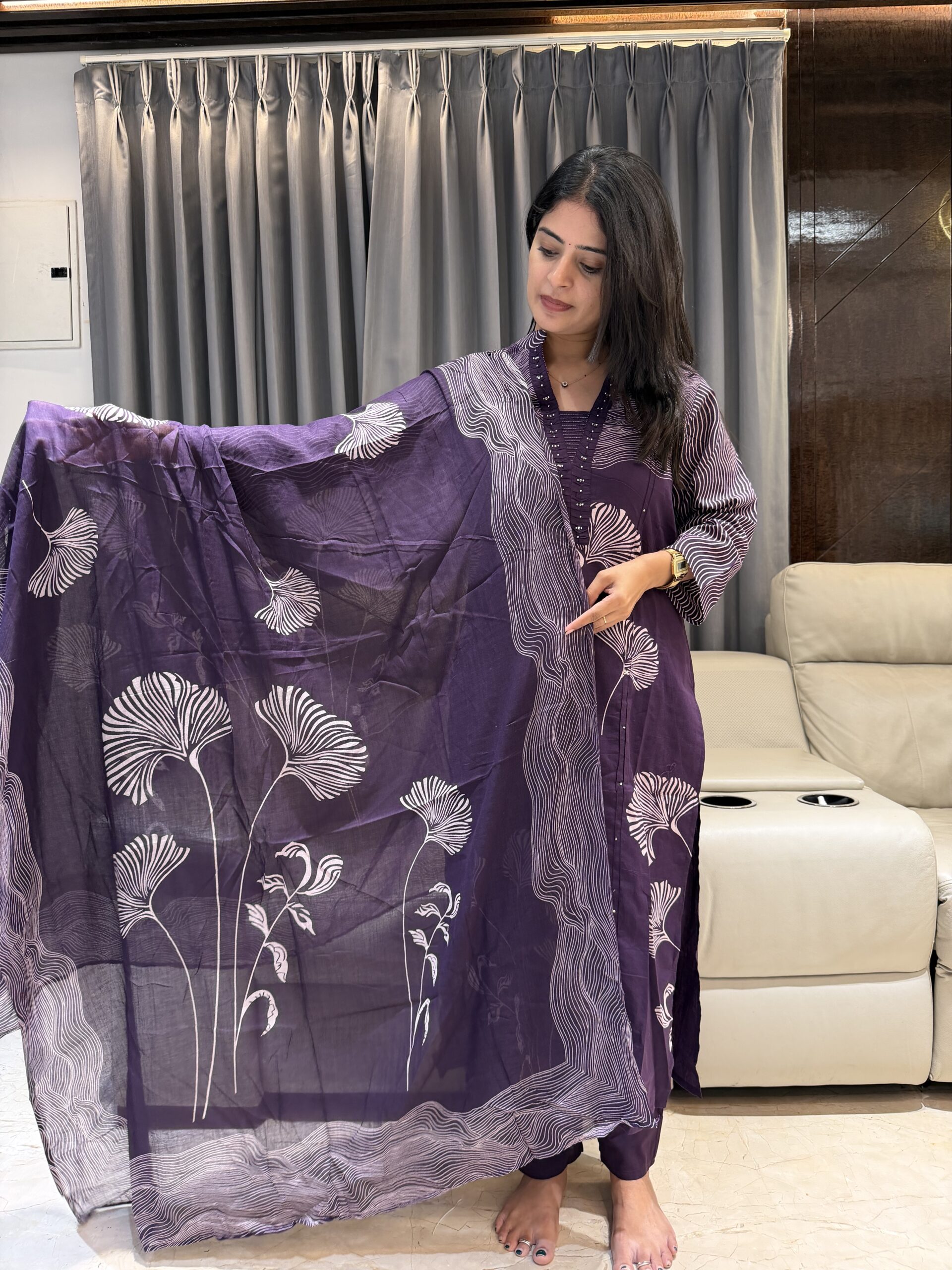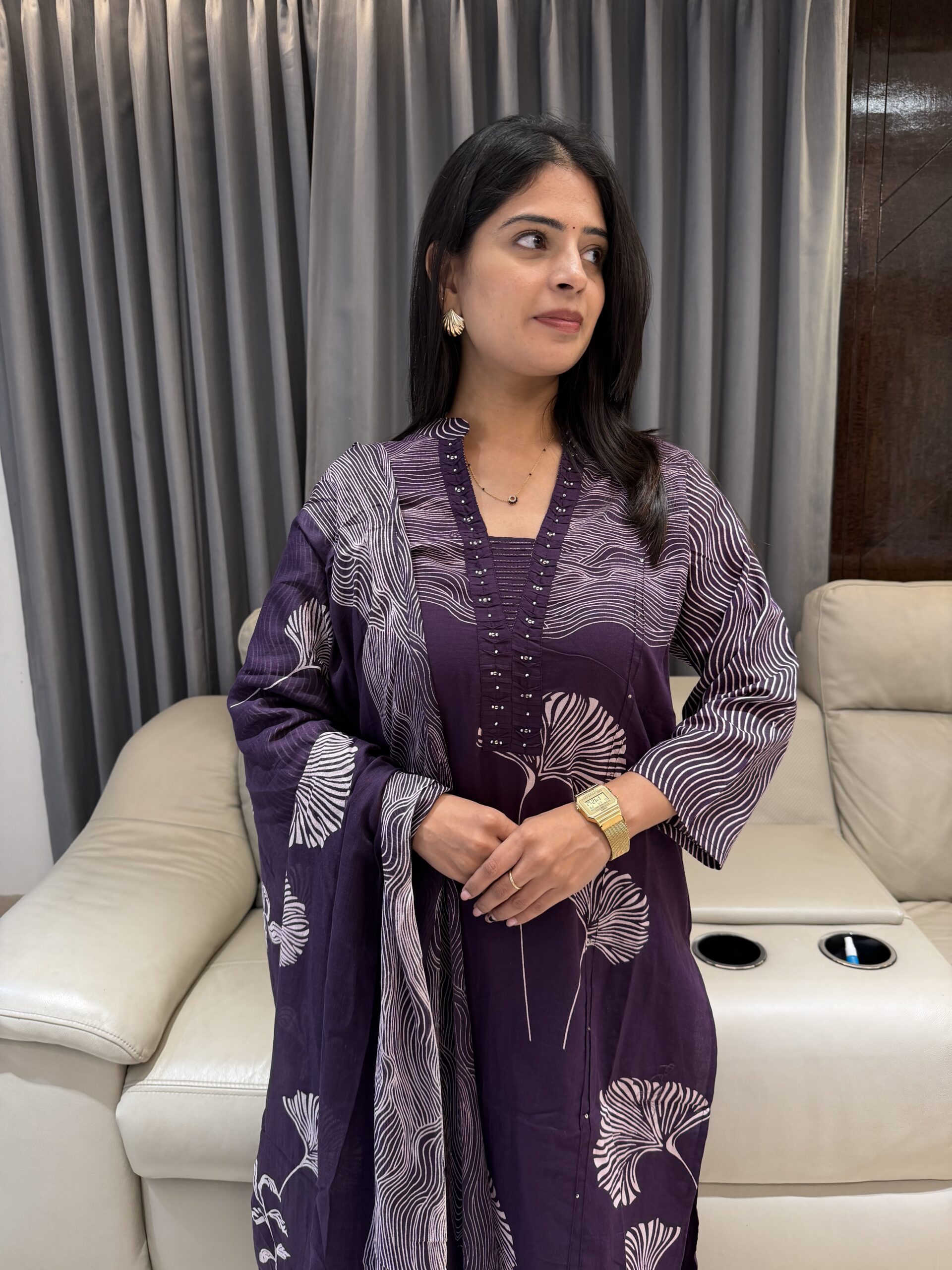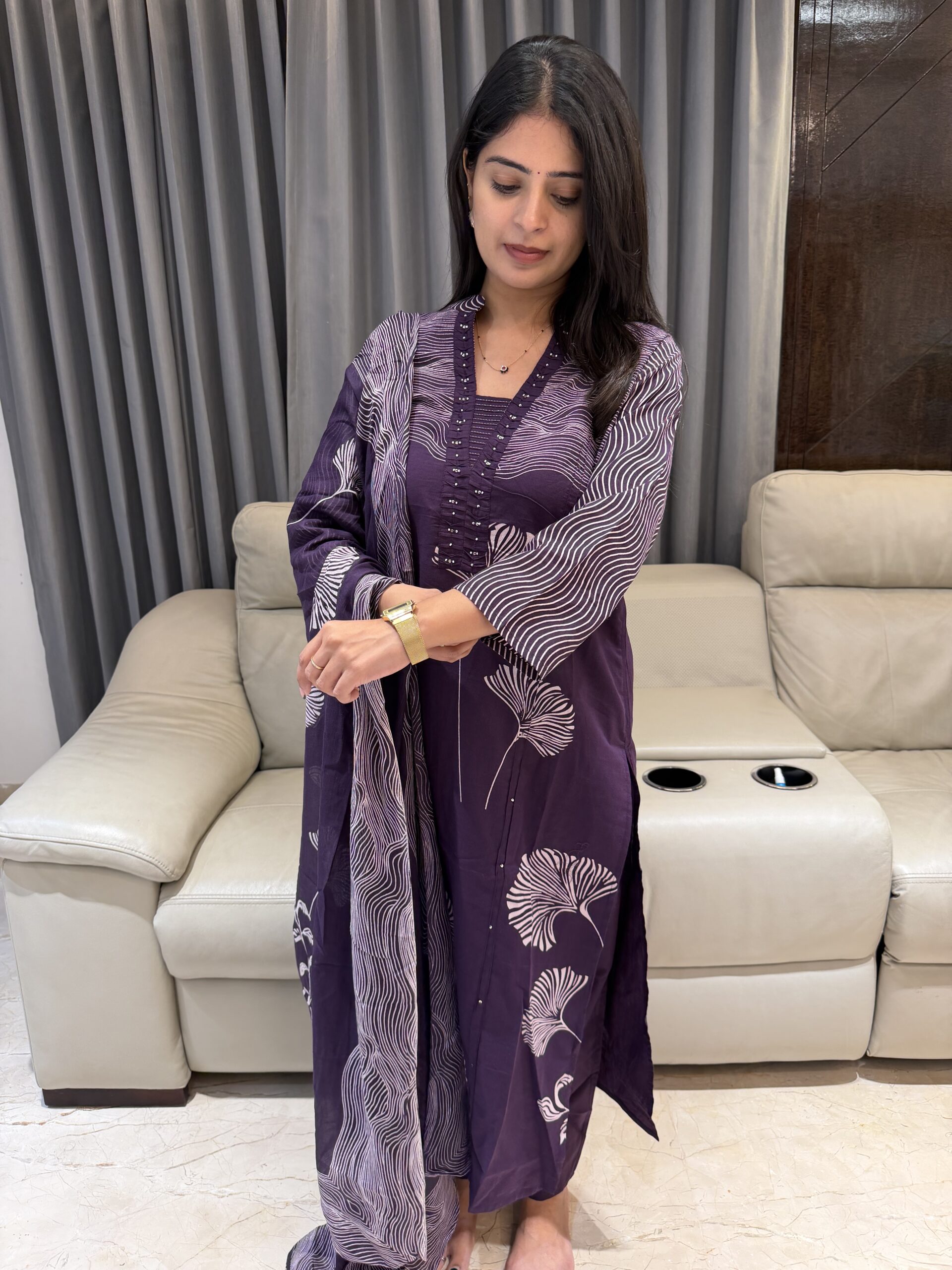 Featuring delicate prints, soft fabric, and a beautifully coordinated dupatta — this outfit is perfect office wear, or everyday elegance 💜