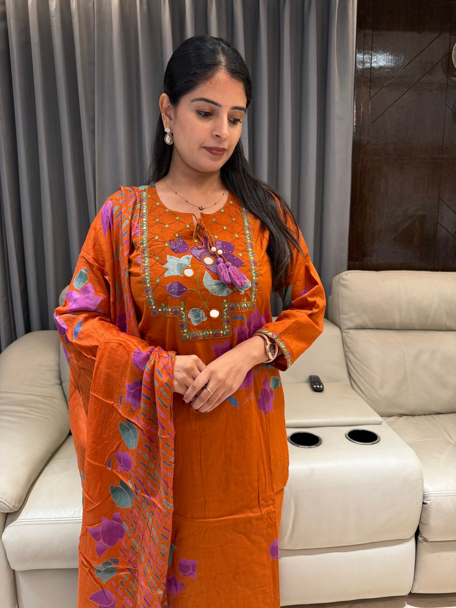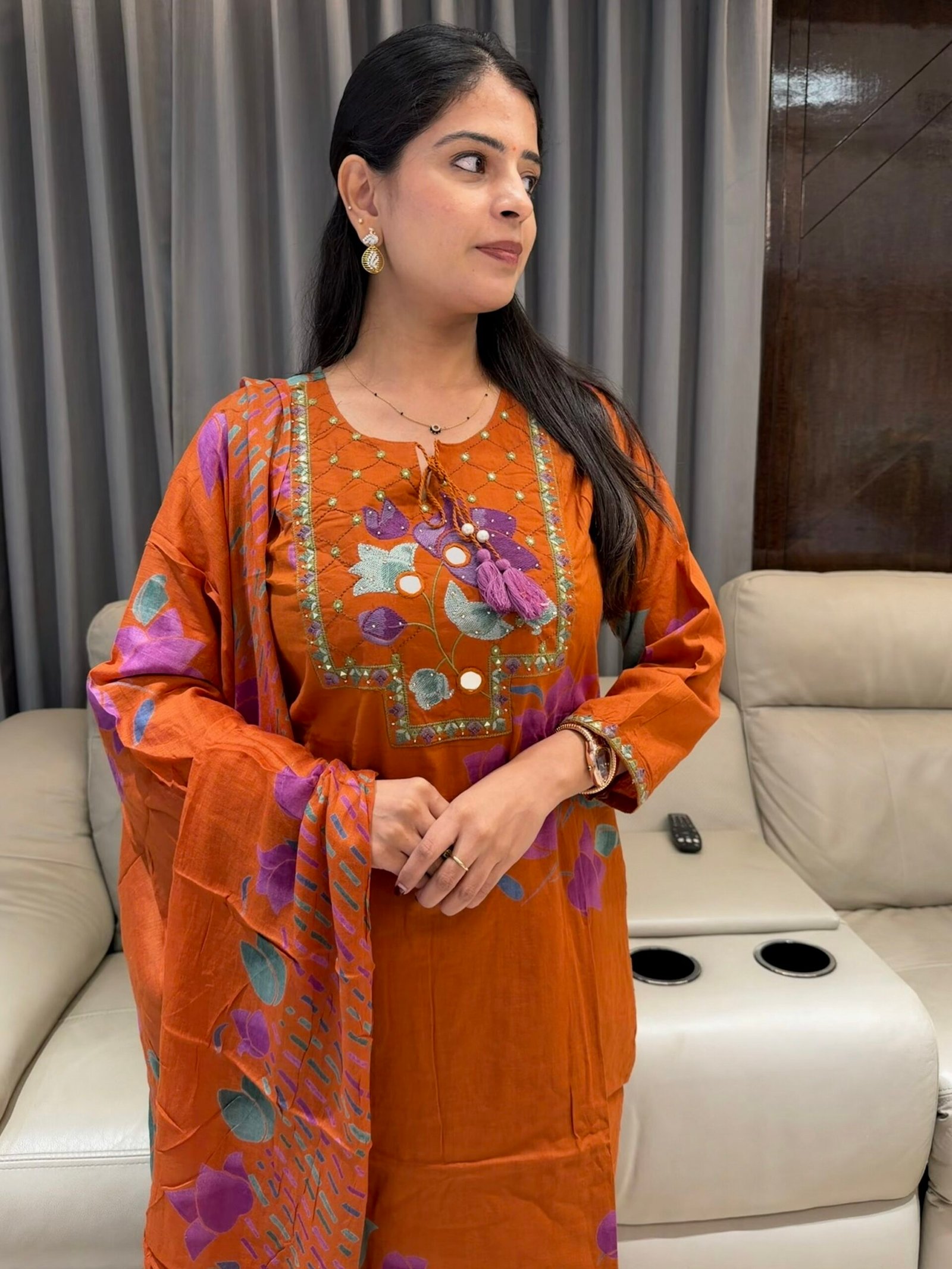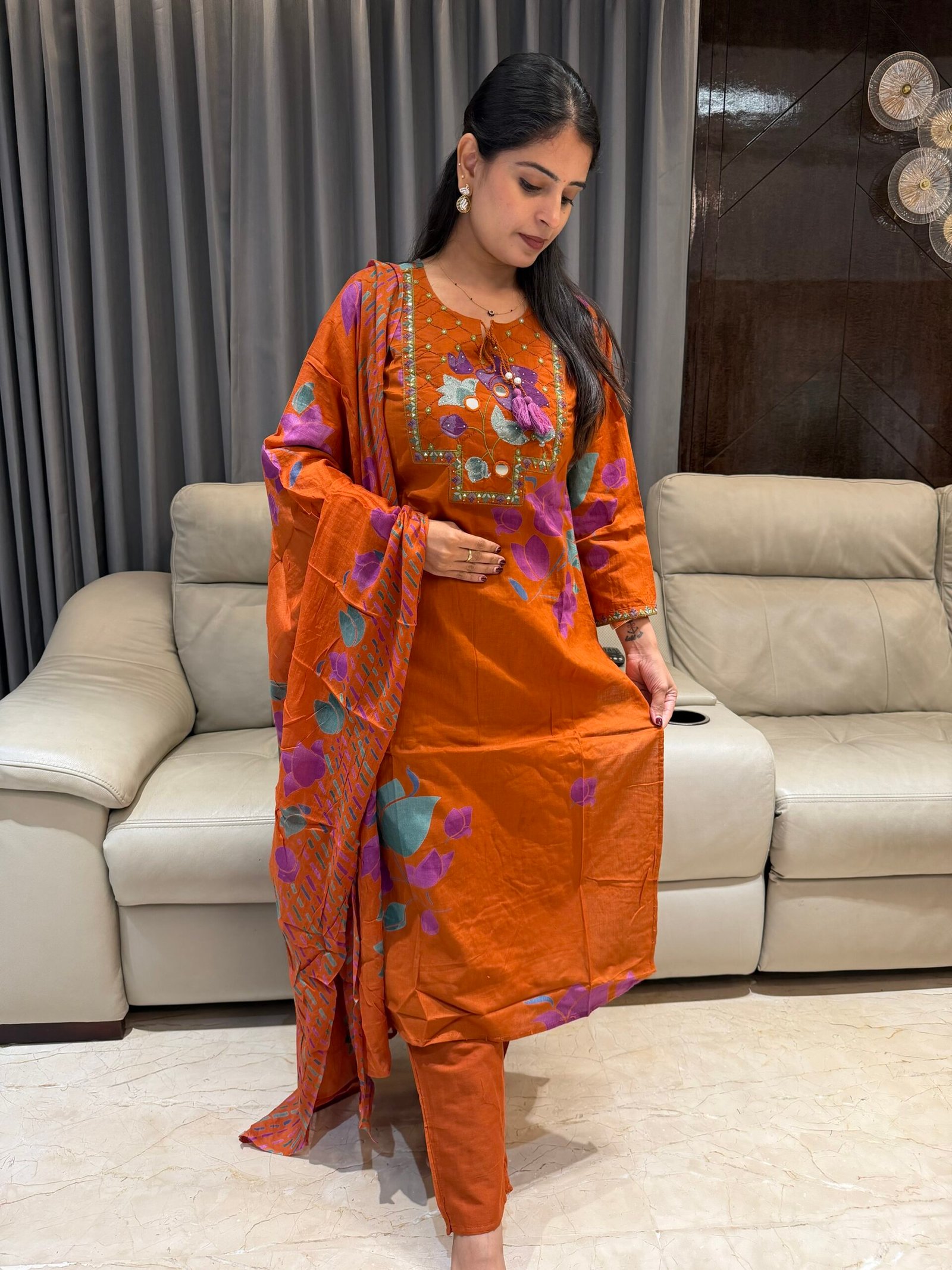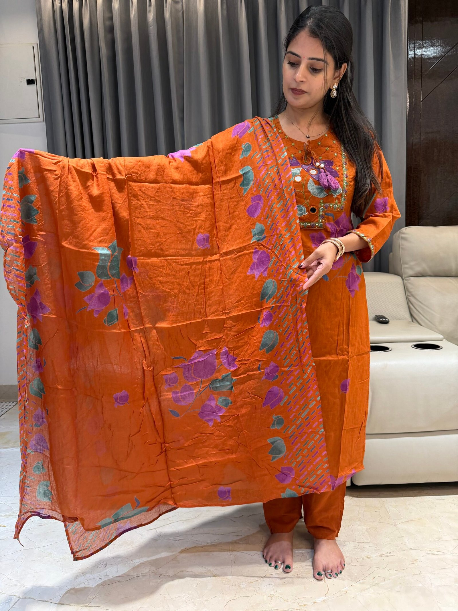 This mul cotton kurta set is your perfect blend of comfort & style – featuring beautiful floral prints, intricate neckline detailing, and a soft, breathable dupatta for all-day wear 🌸