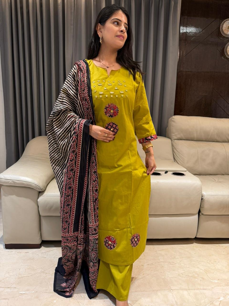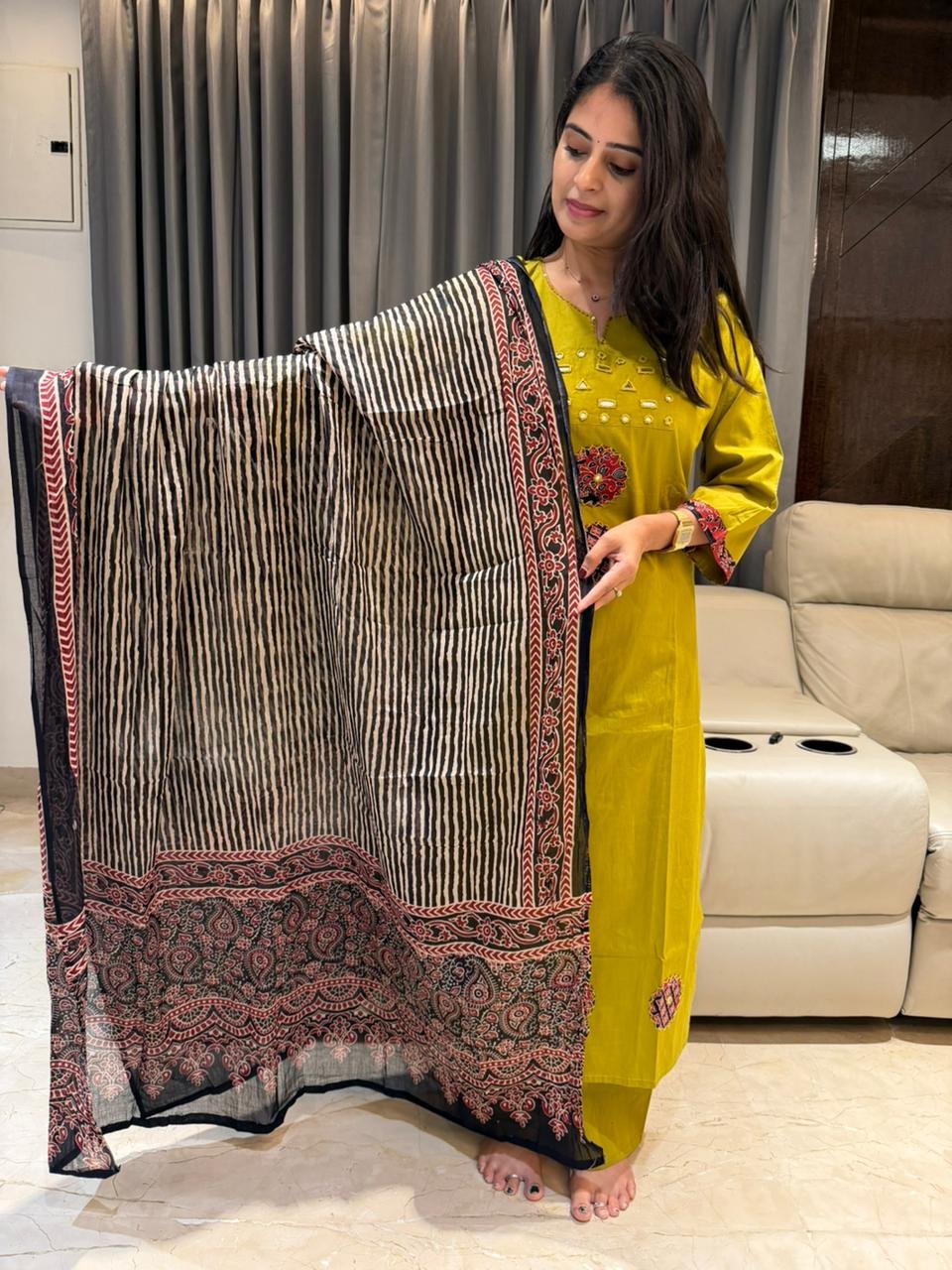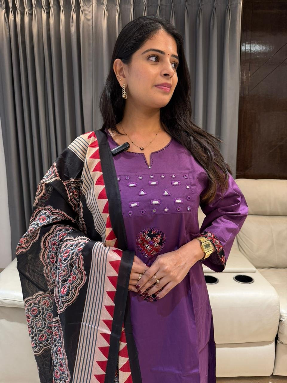 Ajrakh Patch Work Kurta set with real mirror work palazzo pants