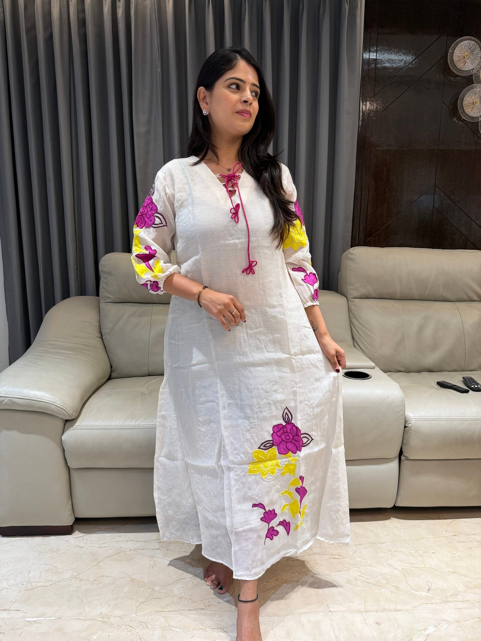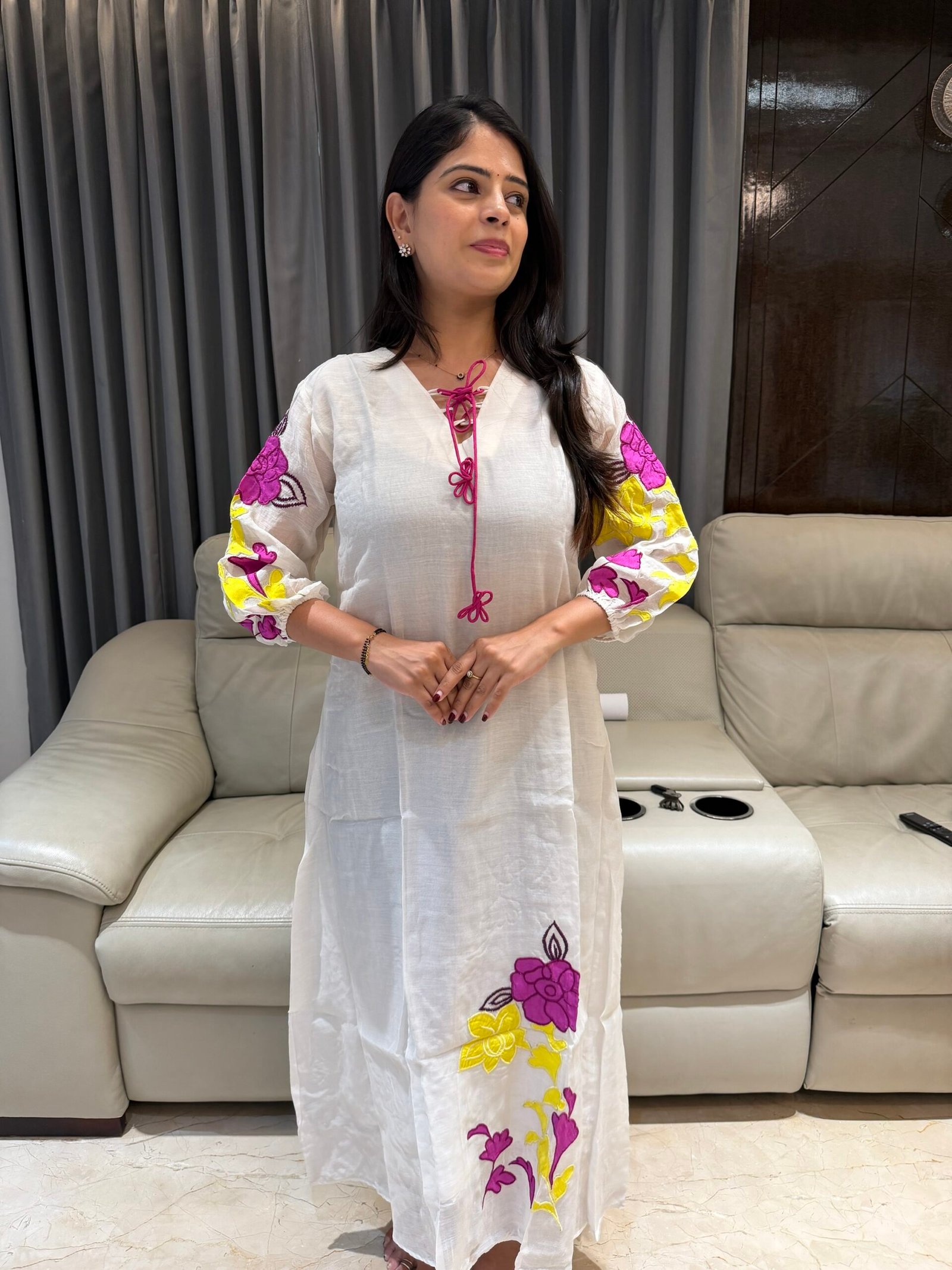 Pretty Mulchanderi Frock with colourful thread embroidery