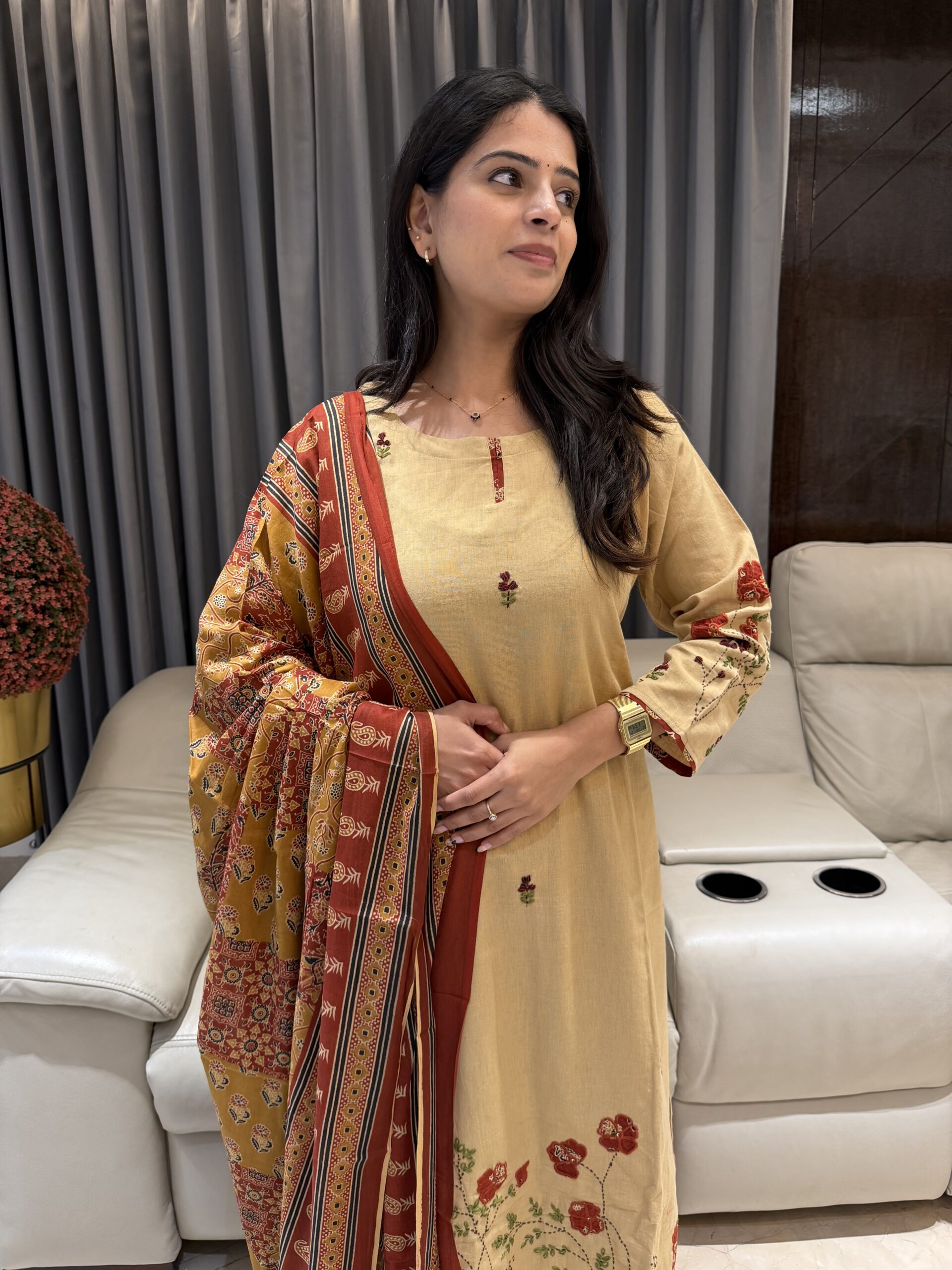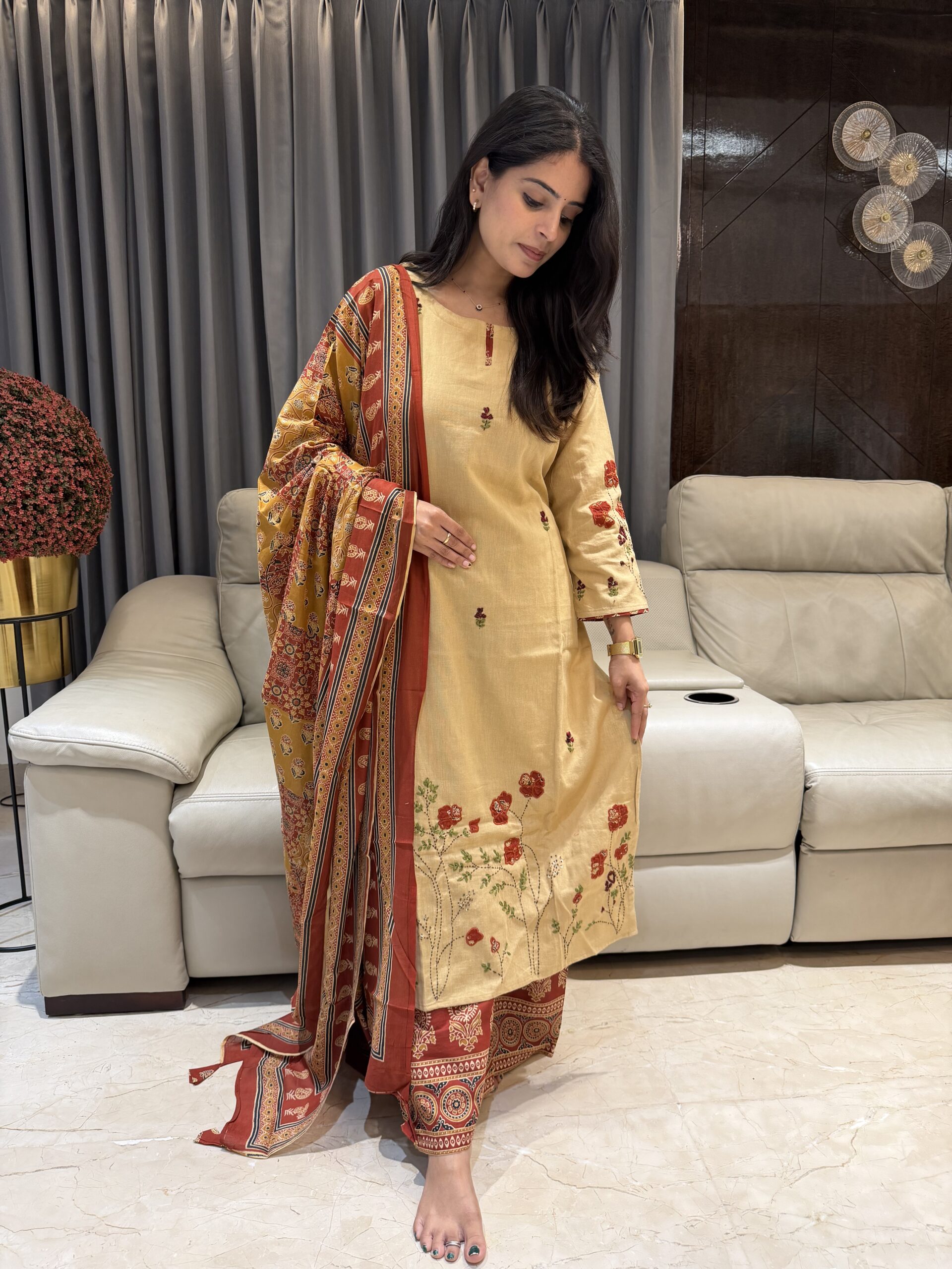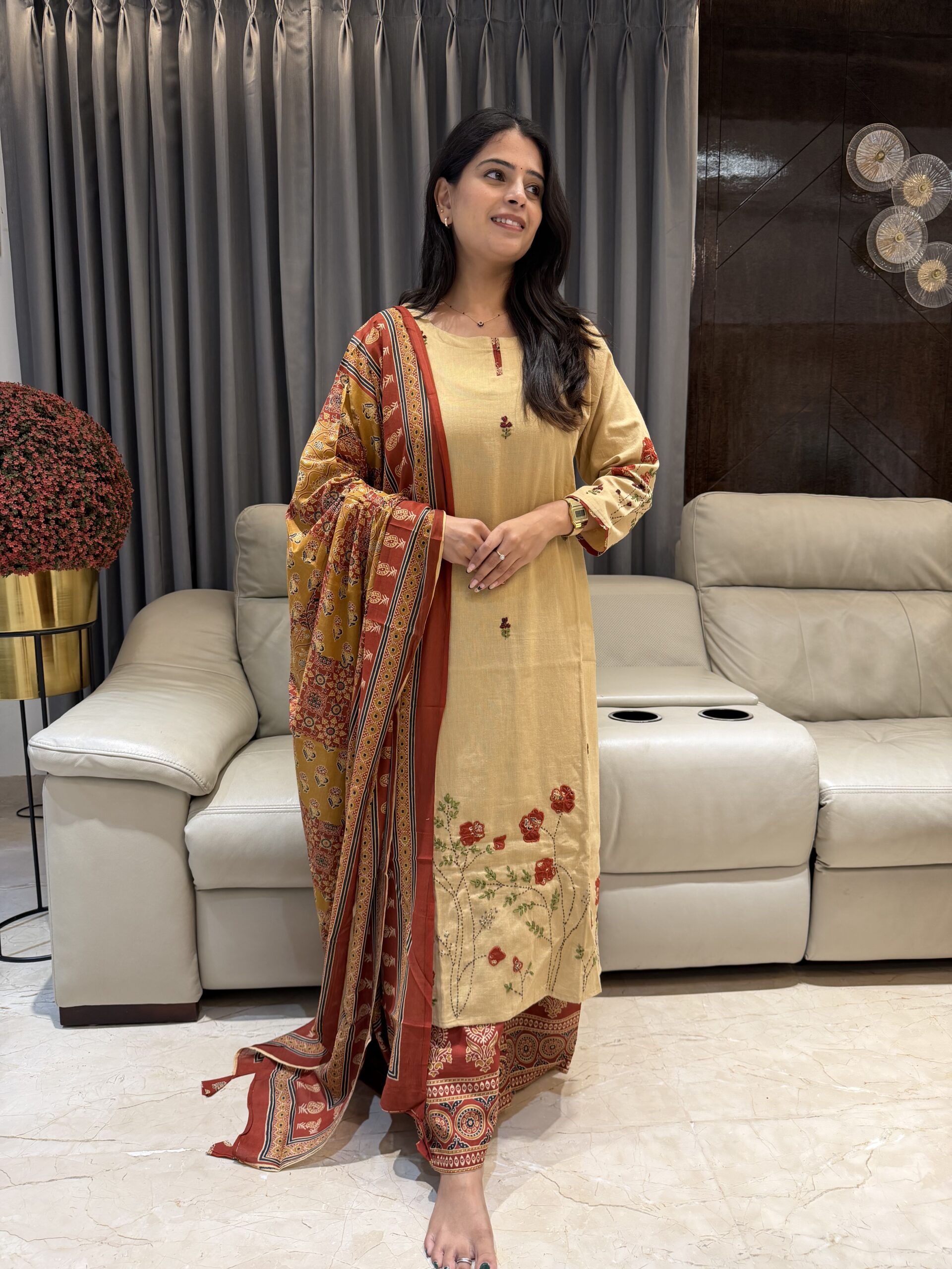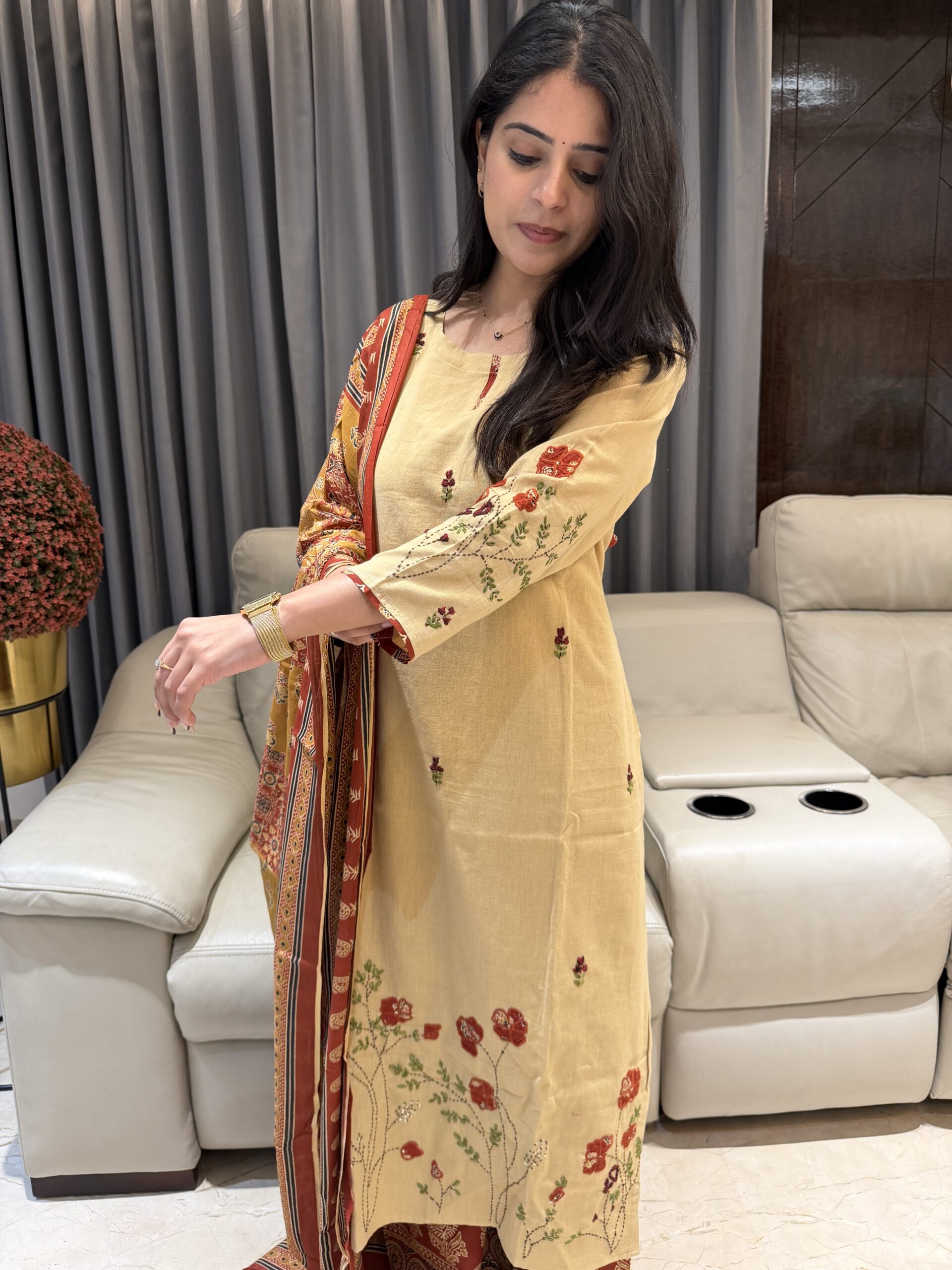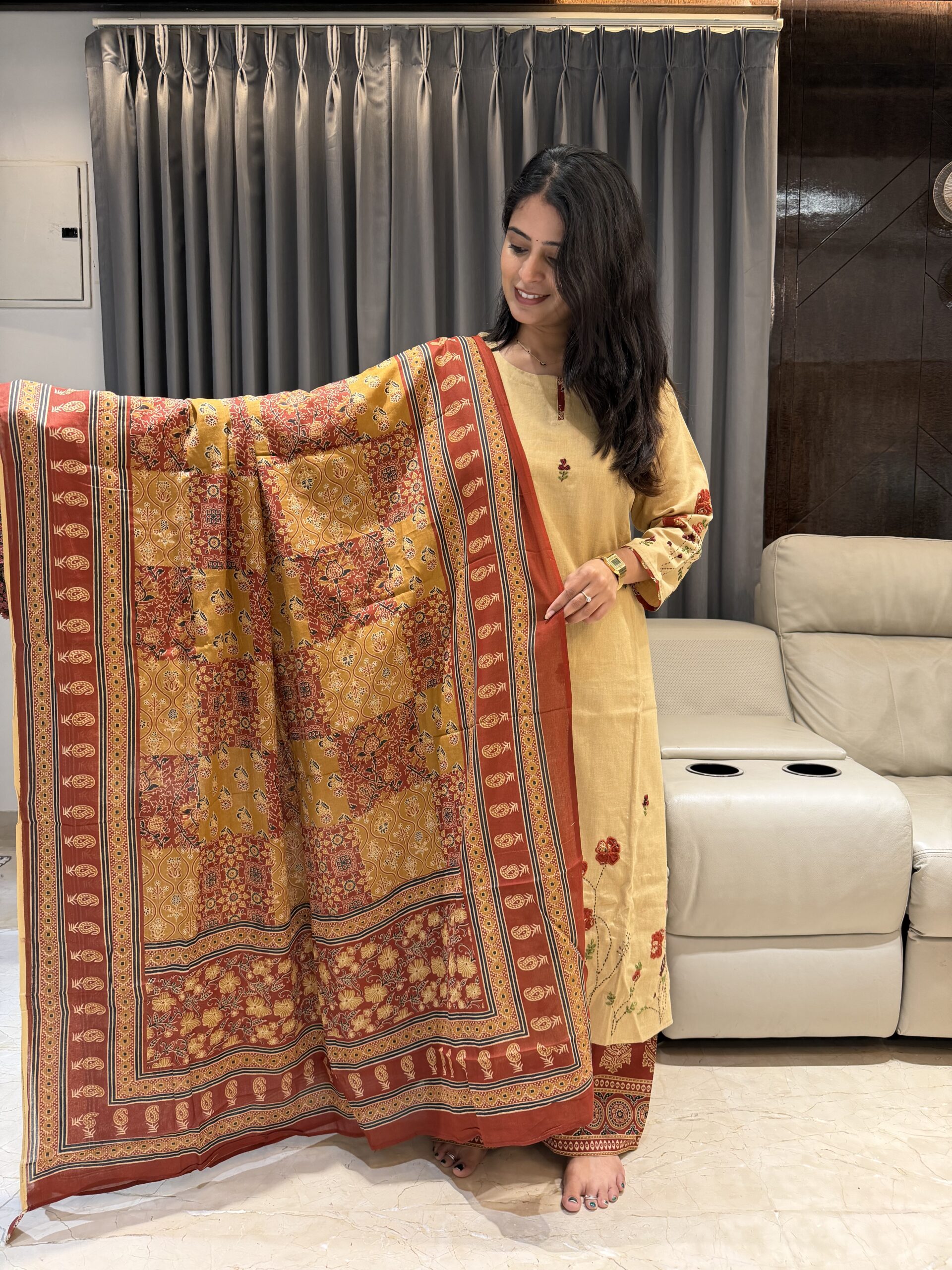 Pure Cotton kurta set with palazzo pants and heavy hand work – applic work