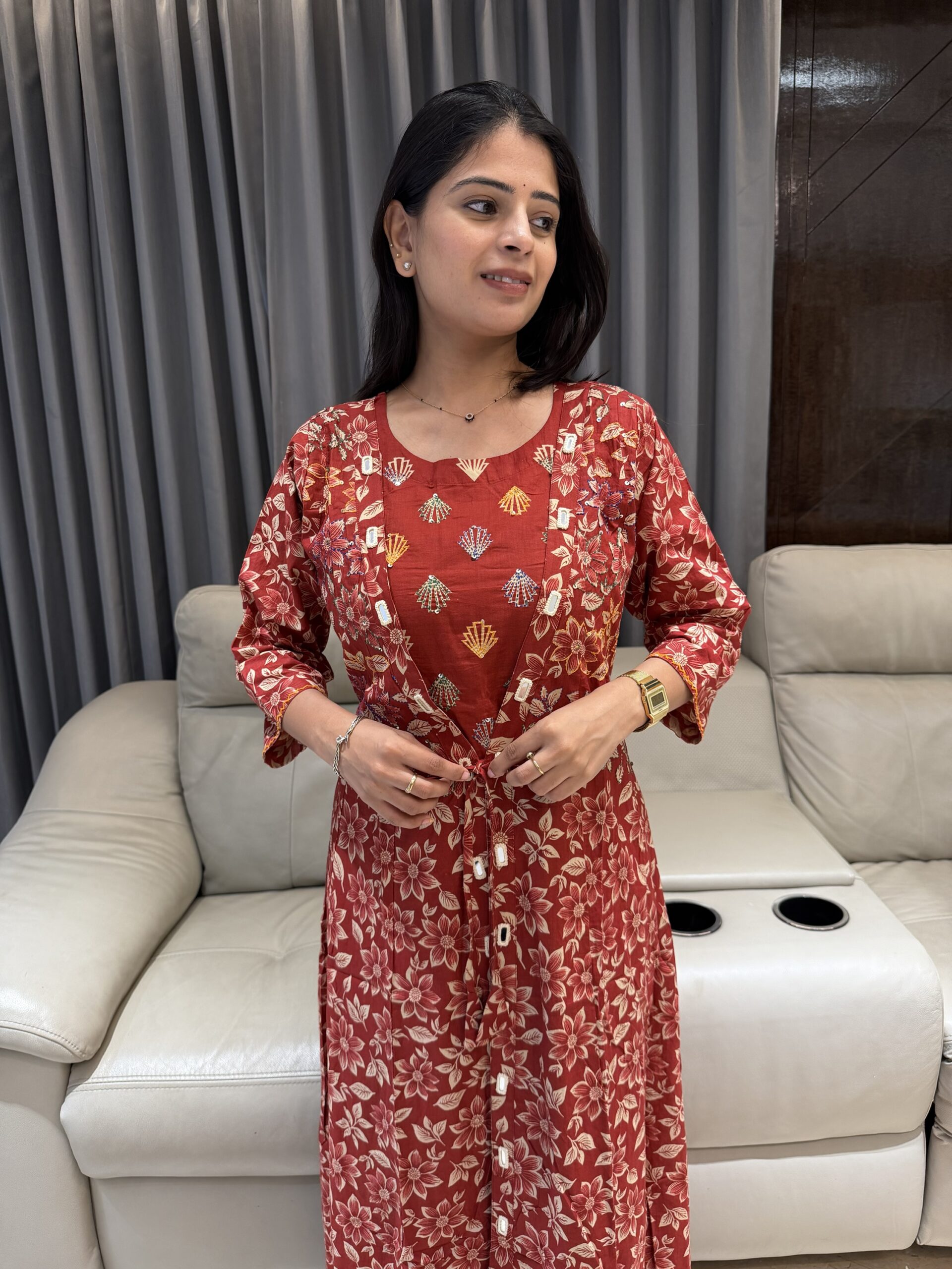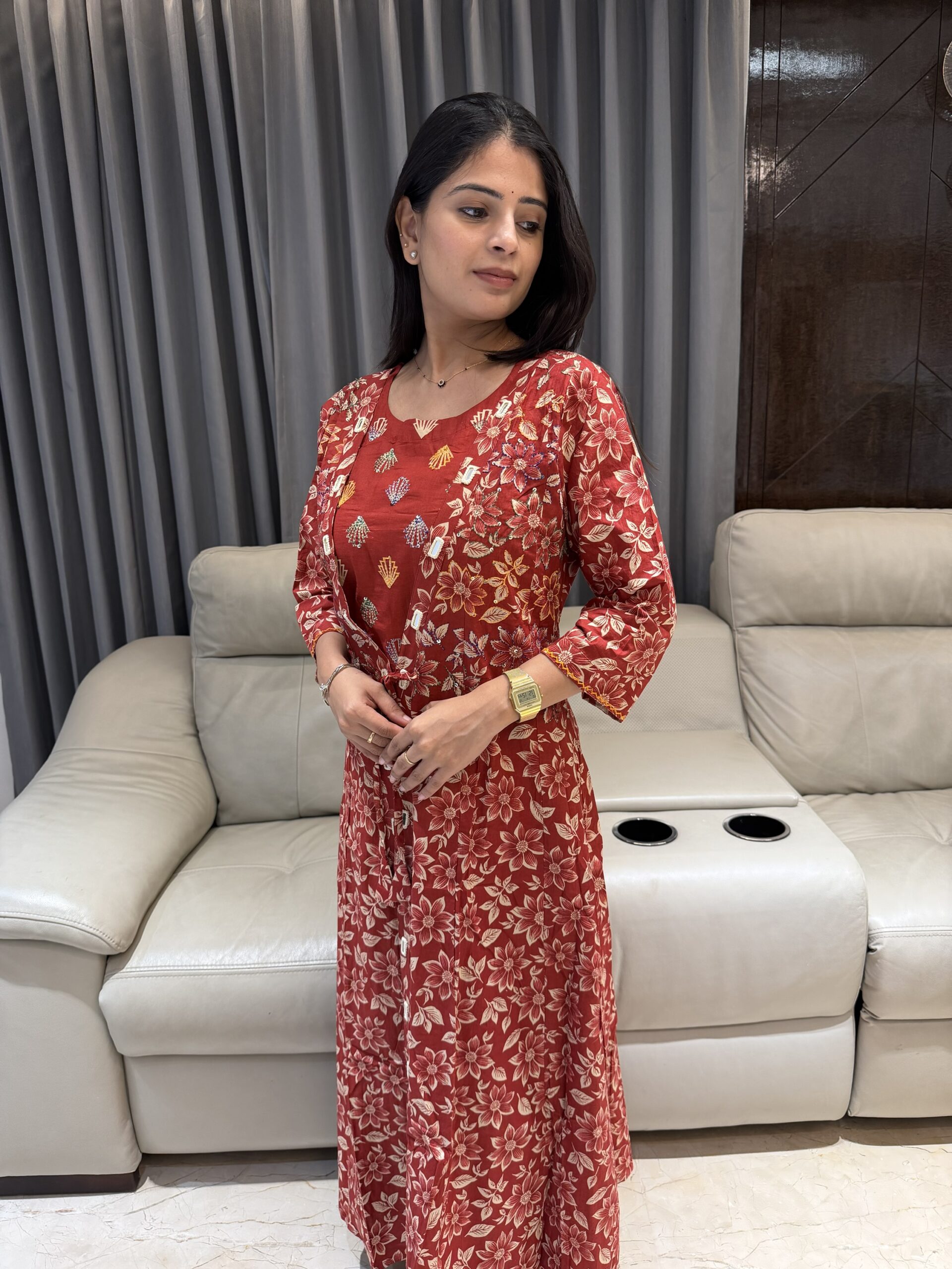 Beautiful floral prints paired with a classy layered look make it perfect for everyday elegance. Soft, breathable fabric with a flattering flare — ideal for summer outings, office wear & casual chic styling.