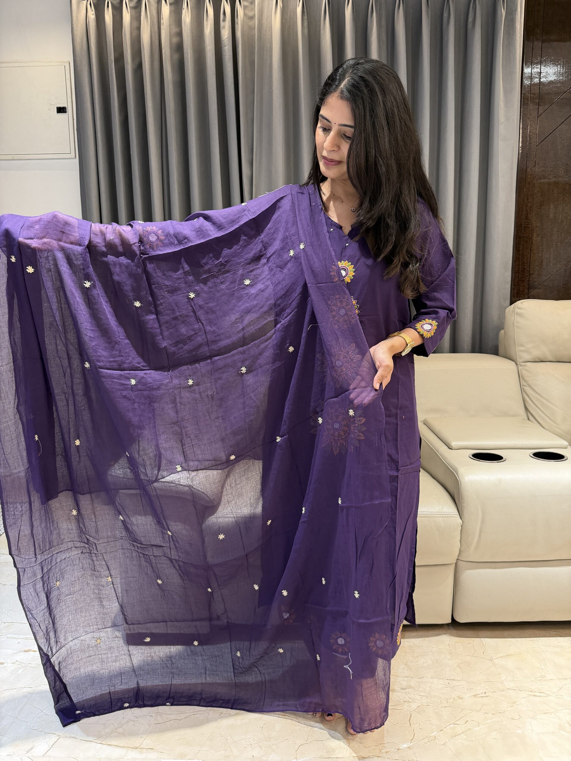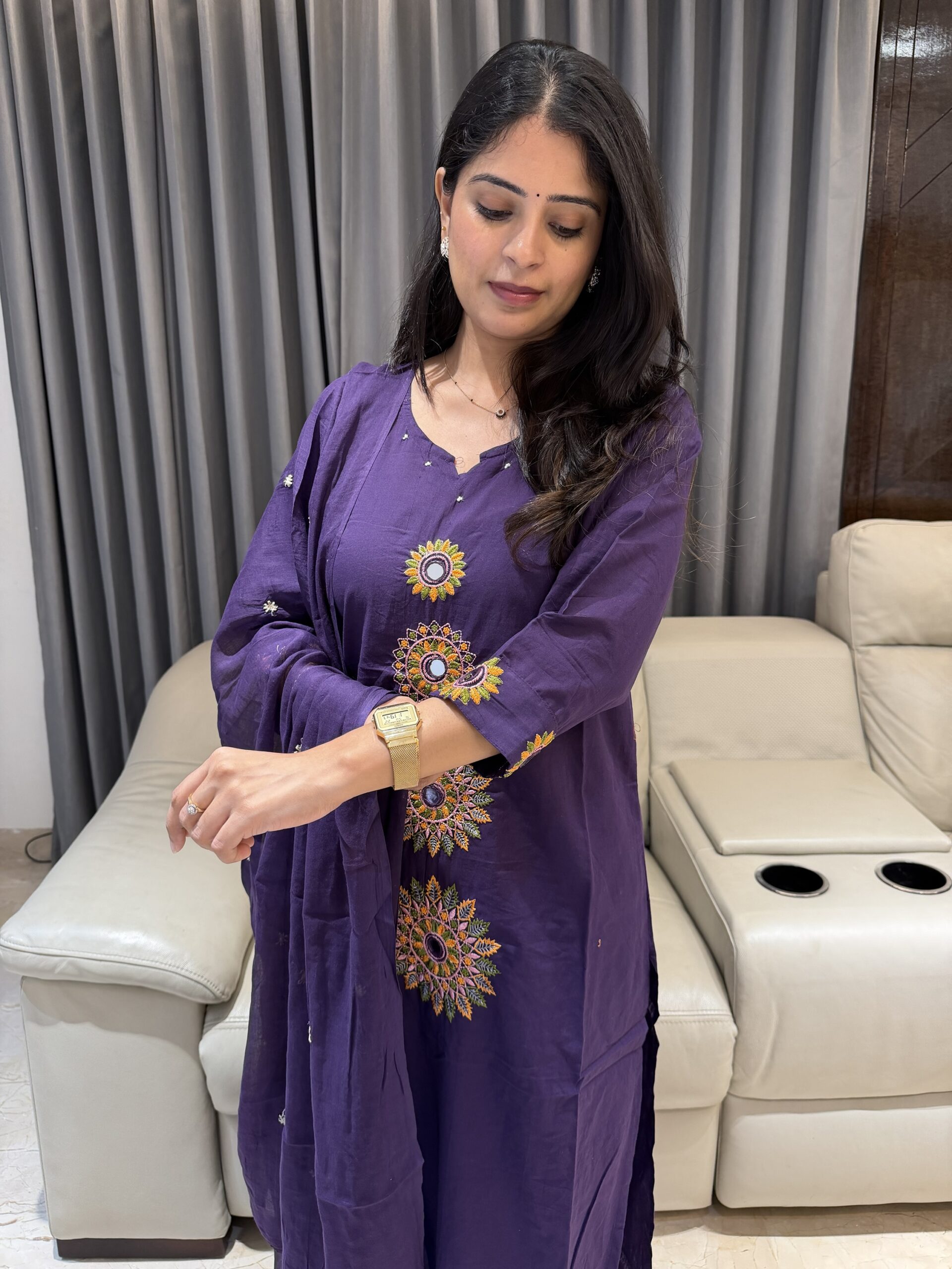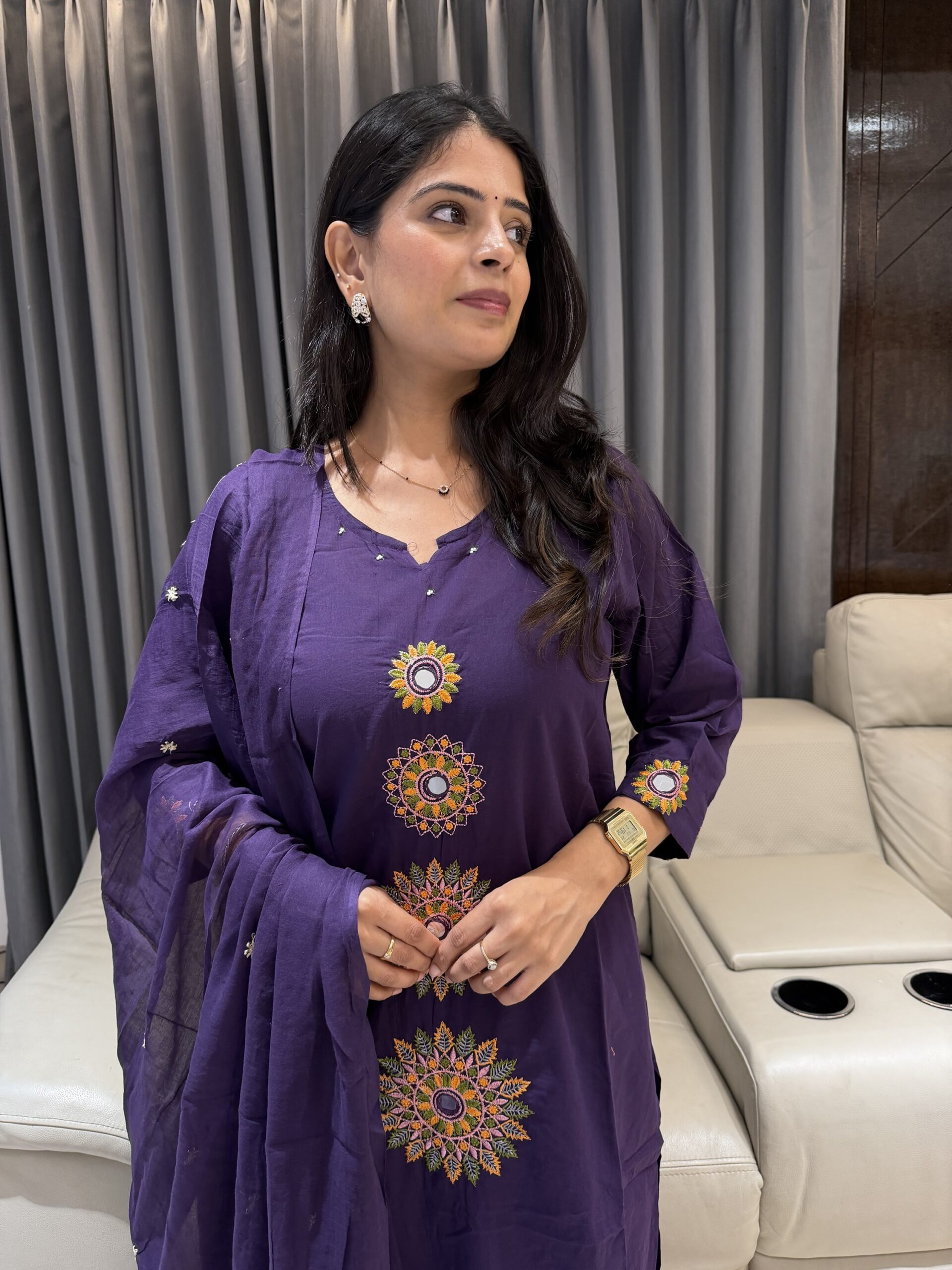 A timeless purple cotton kurta set that blends comfort with striking embroidery 💜✨