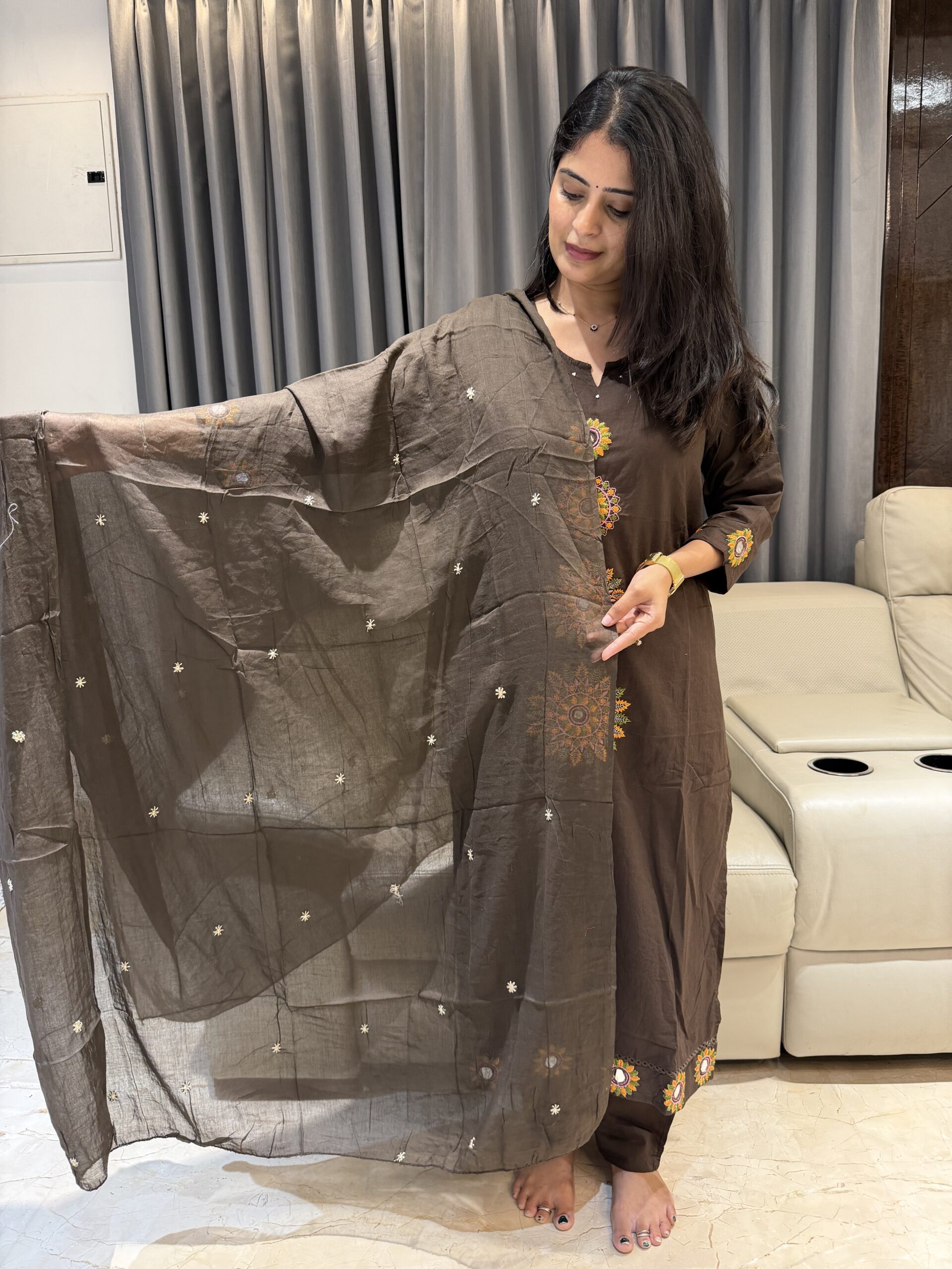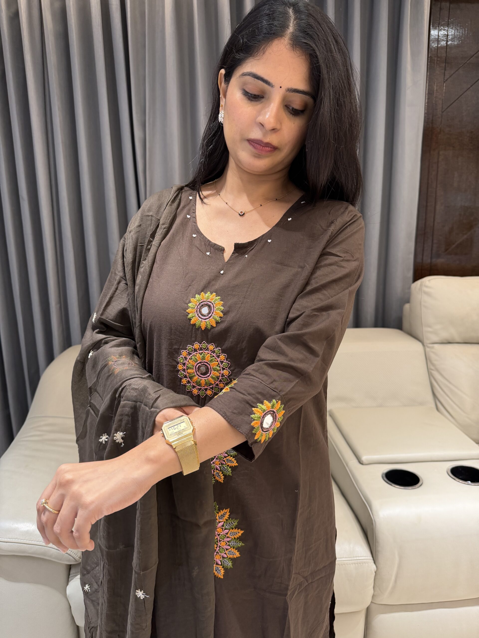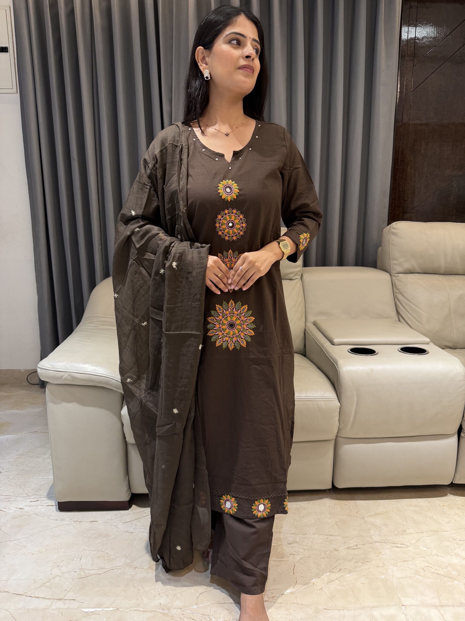 A timeless brown cotton kurta set that blends comfort with striking embroidery ✨
