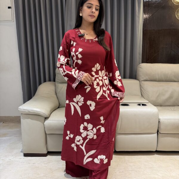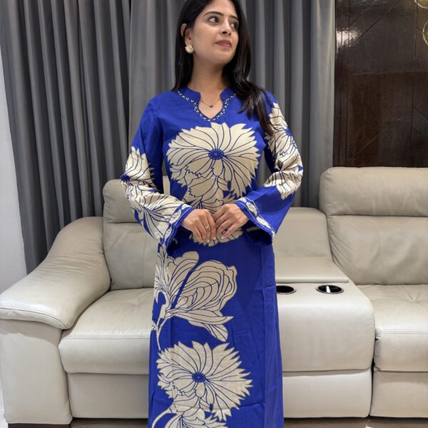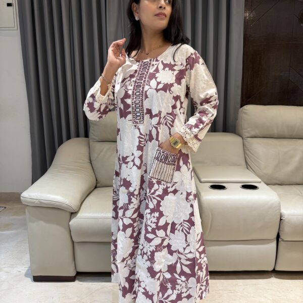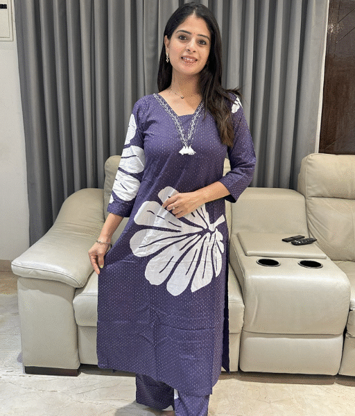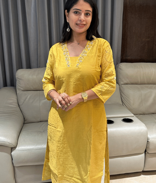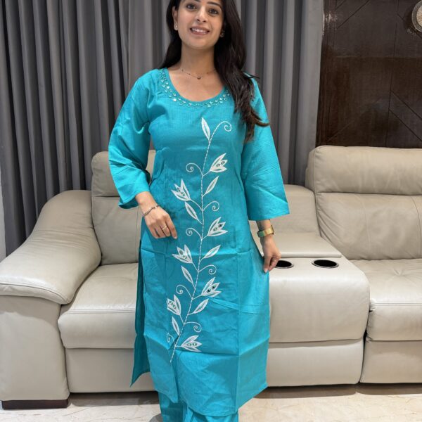 Intricate hand work on the neck adds a refined touch, while the breathable cotton keeps you comfortable all day long.