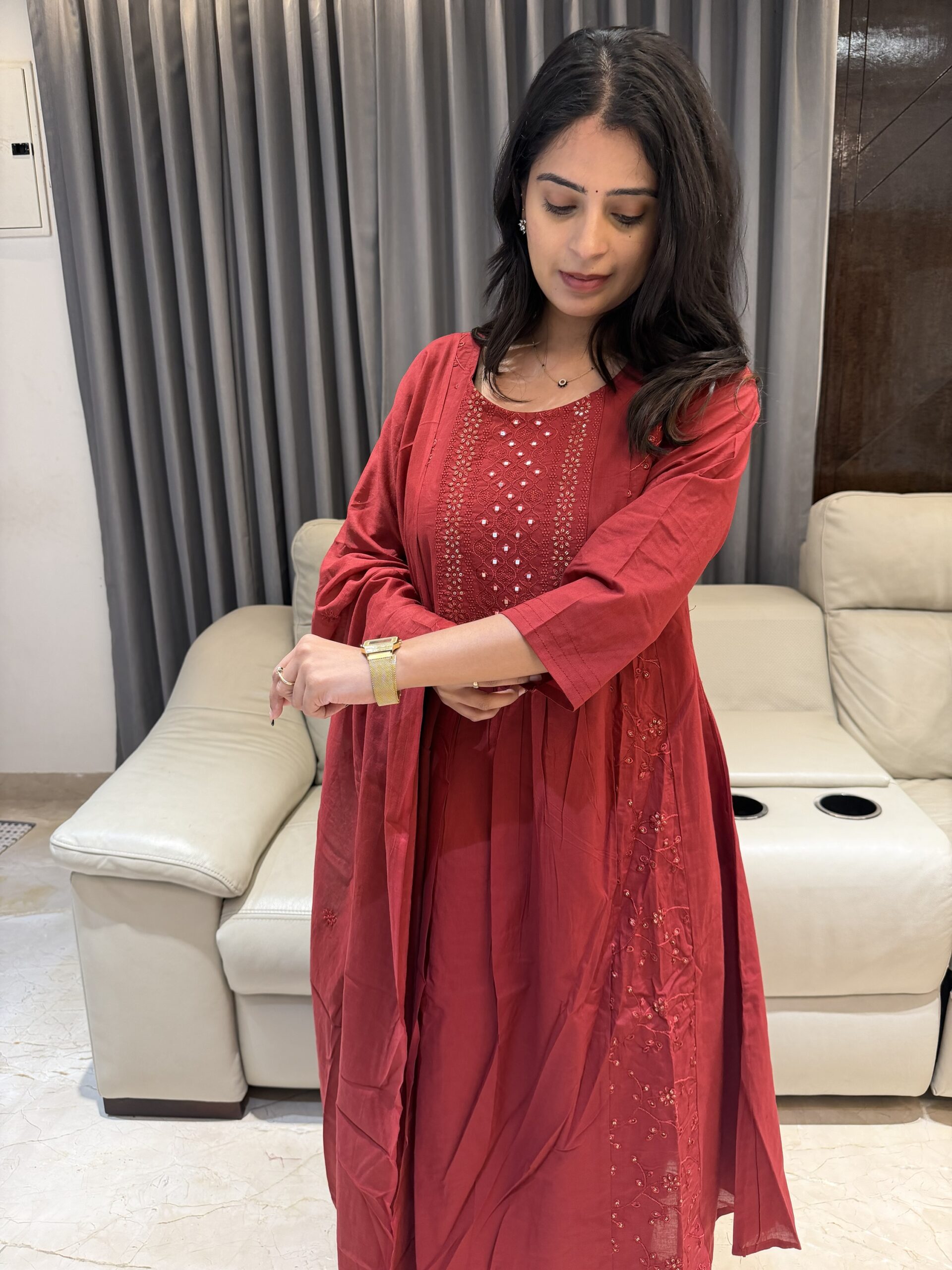 Perfect for festive wear, party wear, family functions, office ethnic days & special occasions. The breathable Jaipur cotton fabric keeps you comfortable all day while the intricate sequence detailing adds that rich designer touch.