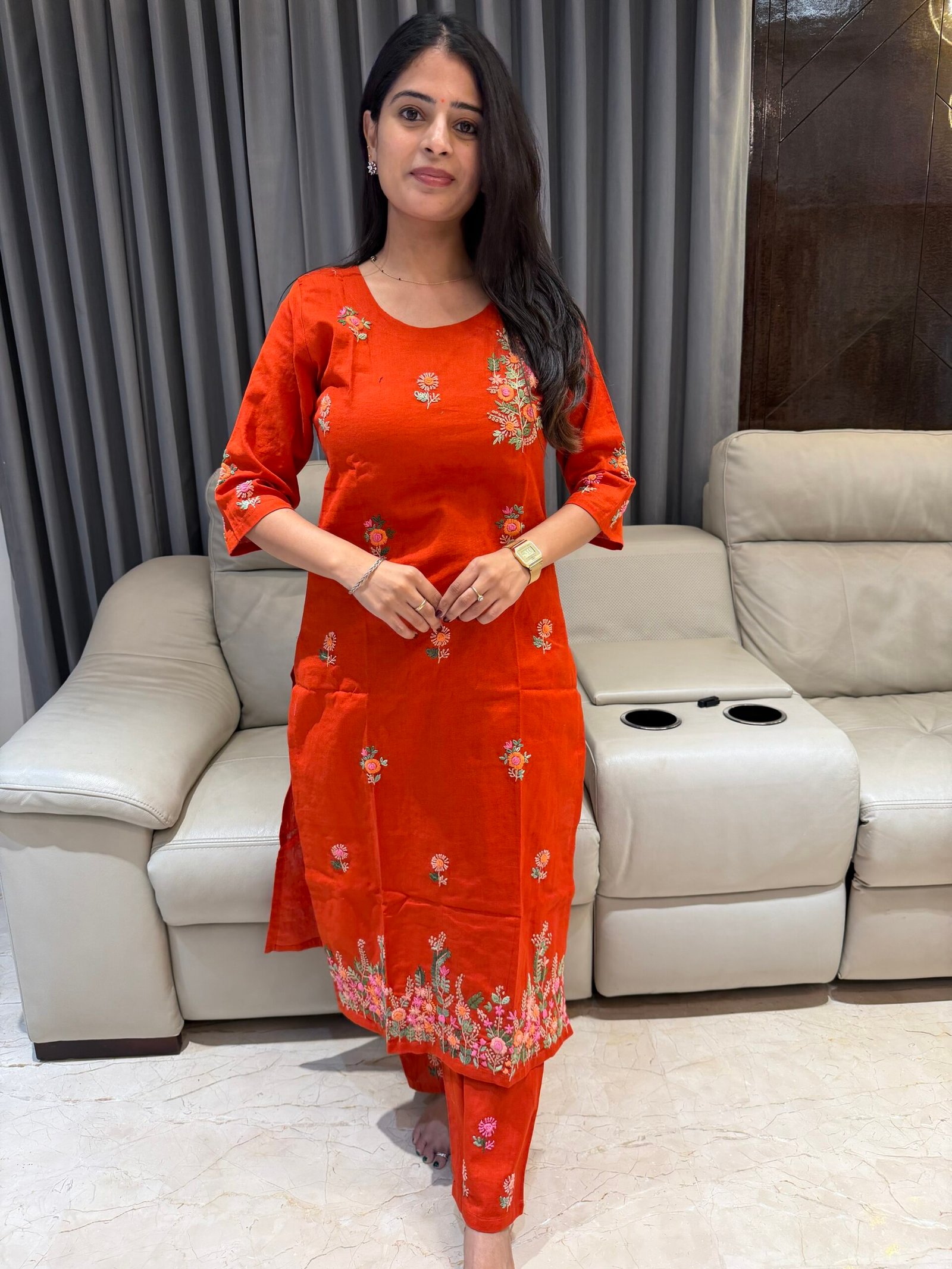Step into effortless ethnic style with this stunning Pure Cotton Coord Set designed for comfort and elegance. The outfit features complete handmade French knot thread work, creating delicate floral motifs that add a rich handcrafted charm. Perfect for summer wear, casual outings, office wear, college wear, or day events, this breathable cotton set keeps you stylish and comfortable all day long.