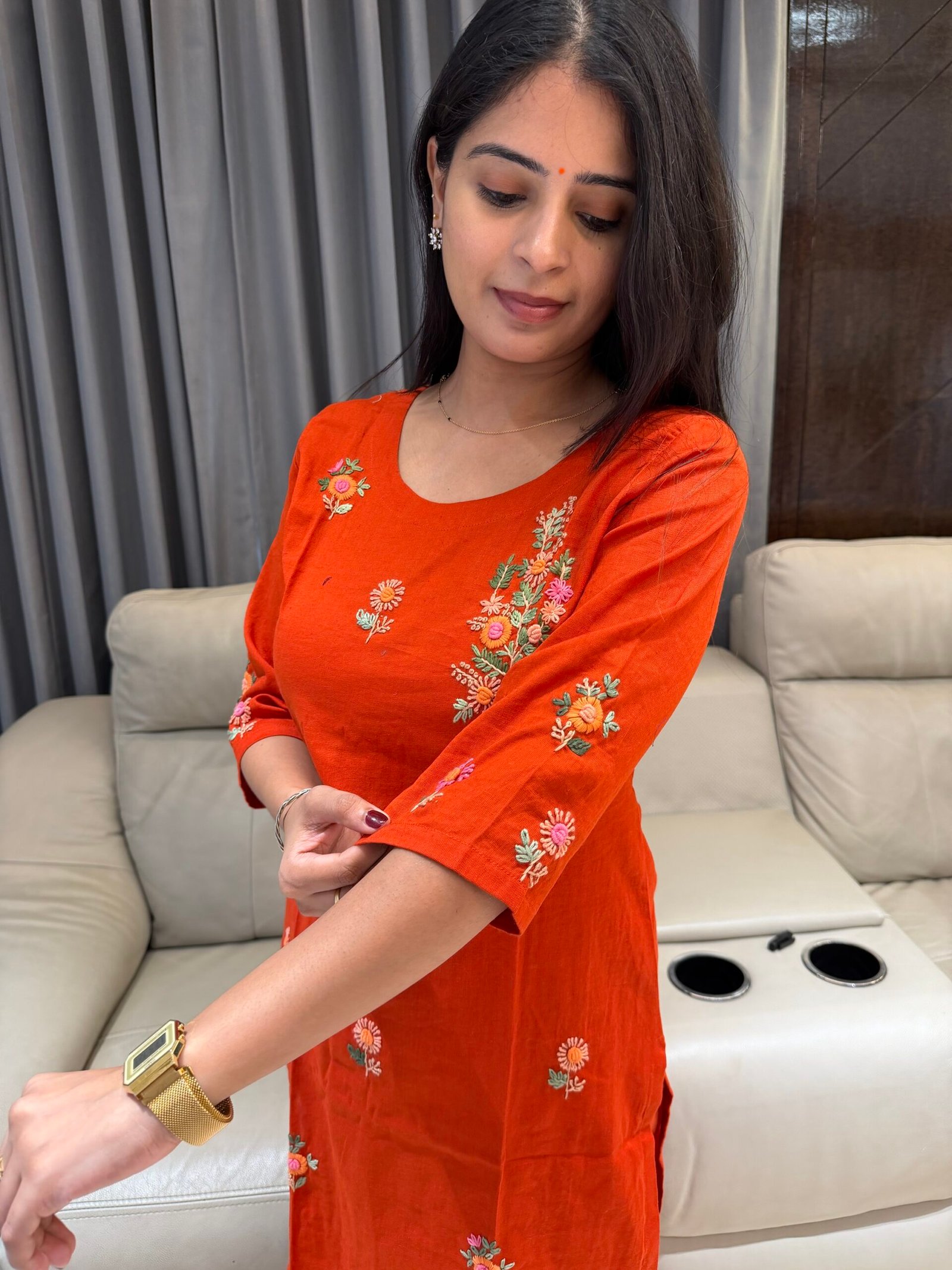 🌸 Elegant floral embroidery detailing