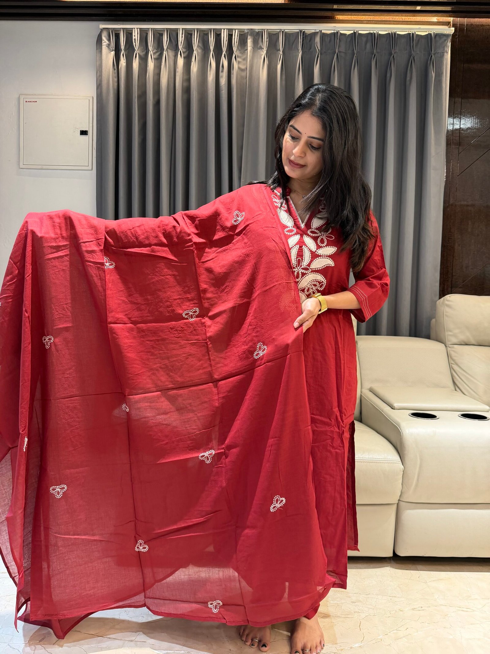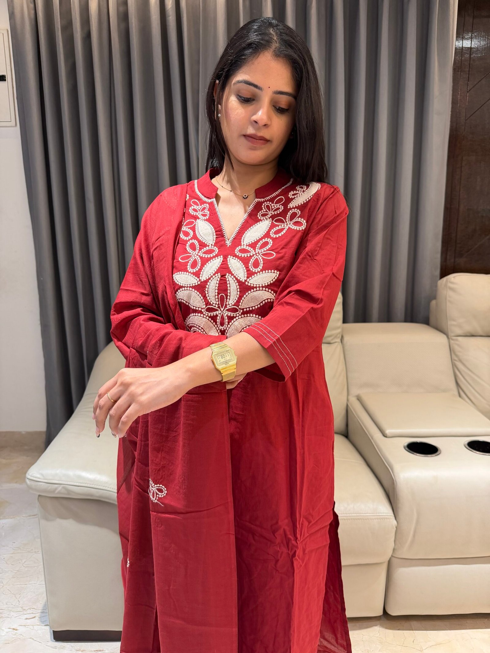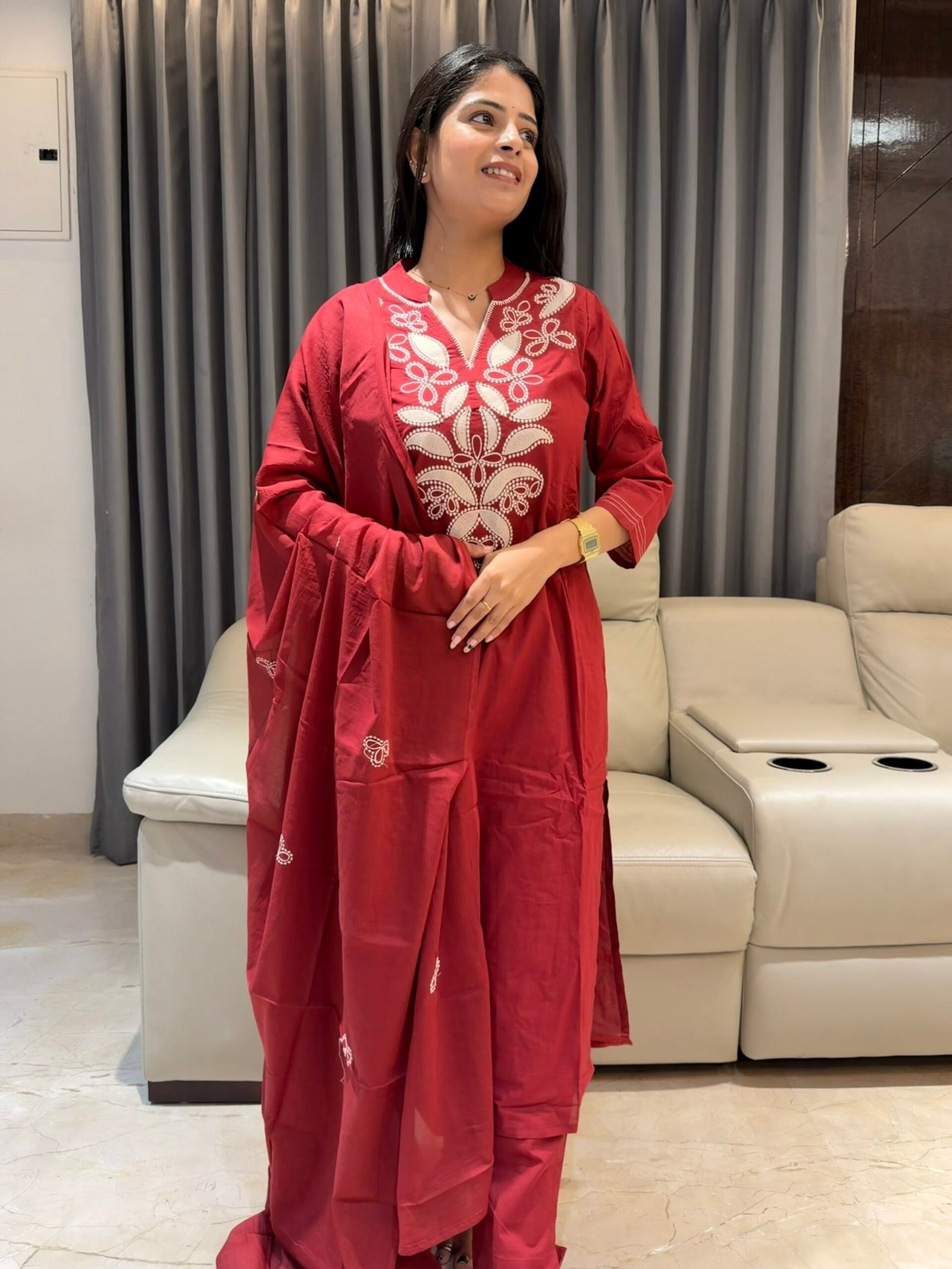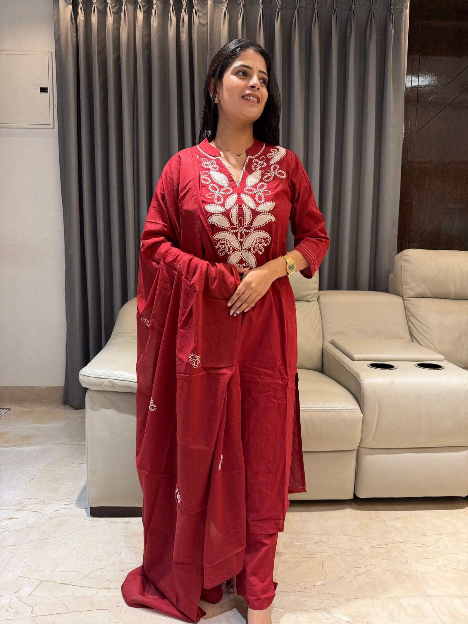 Pure Cotton kurta and Dupatta Set with thread embroidery