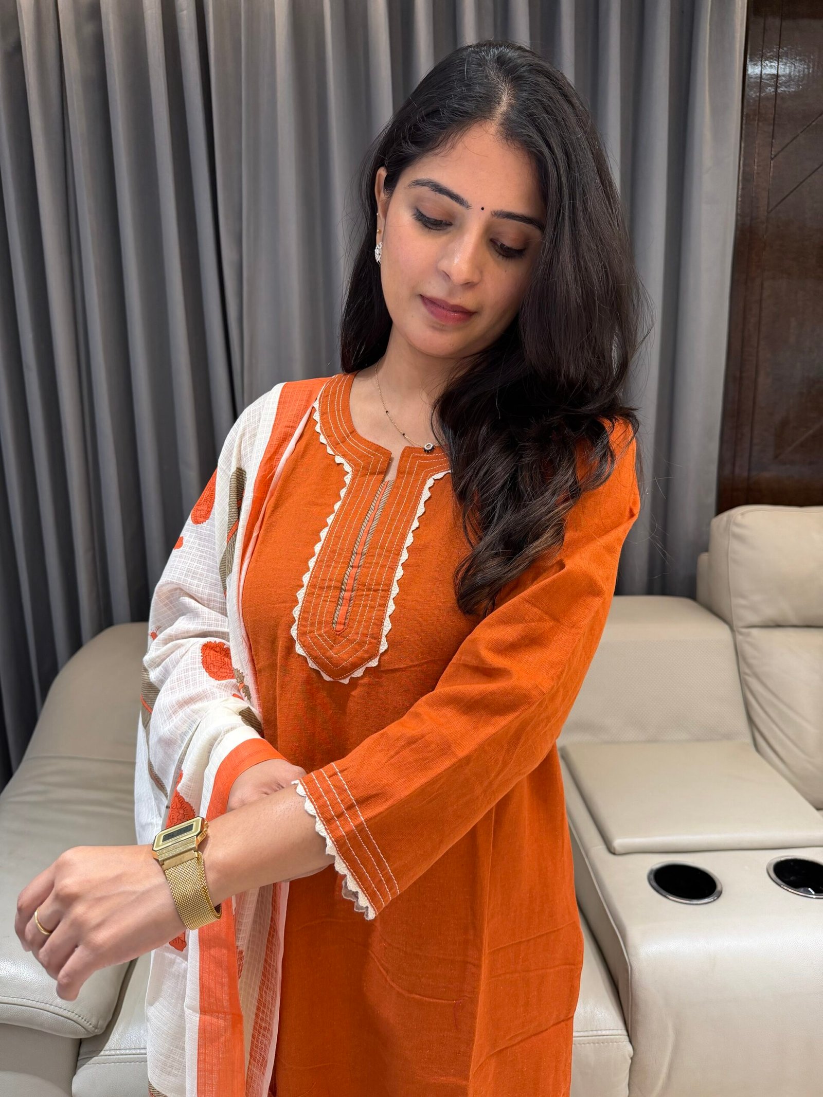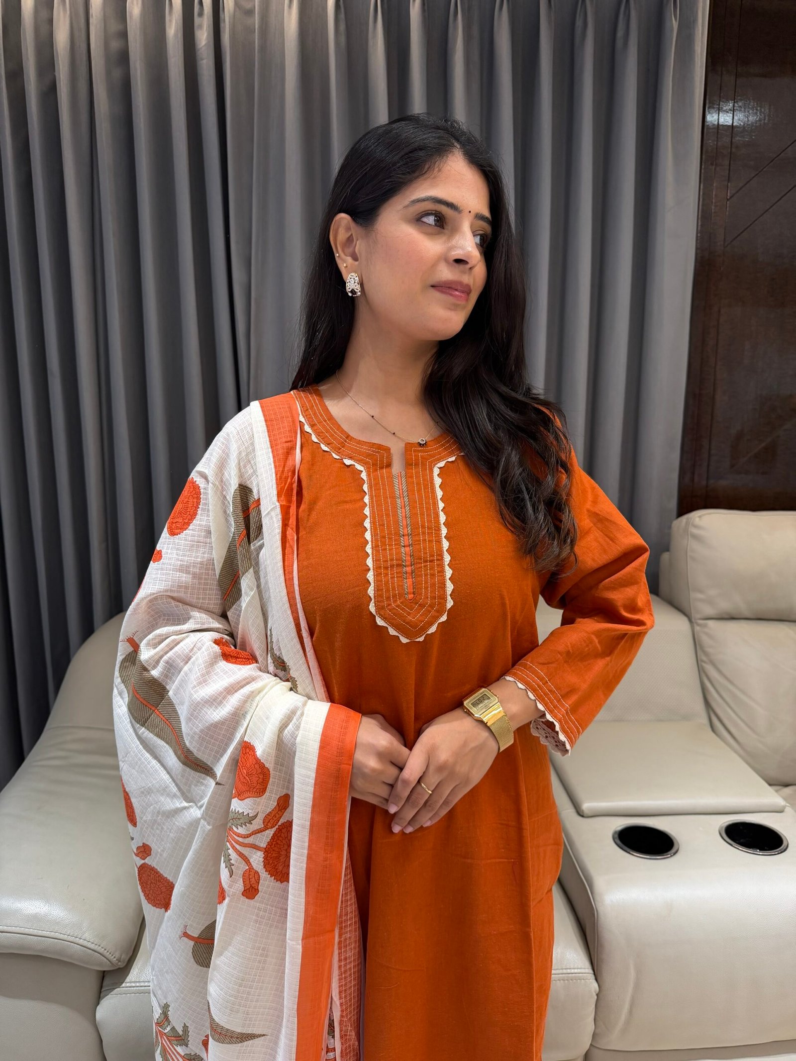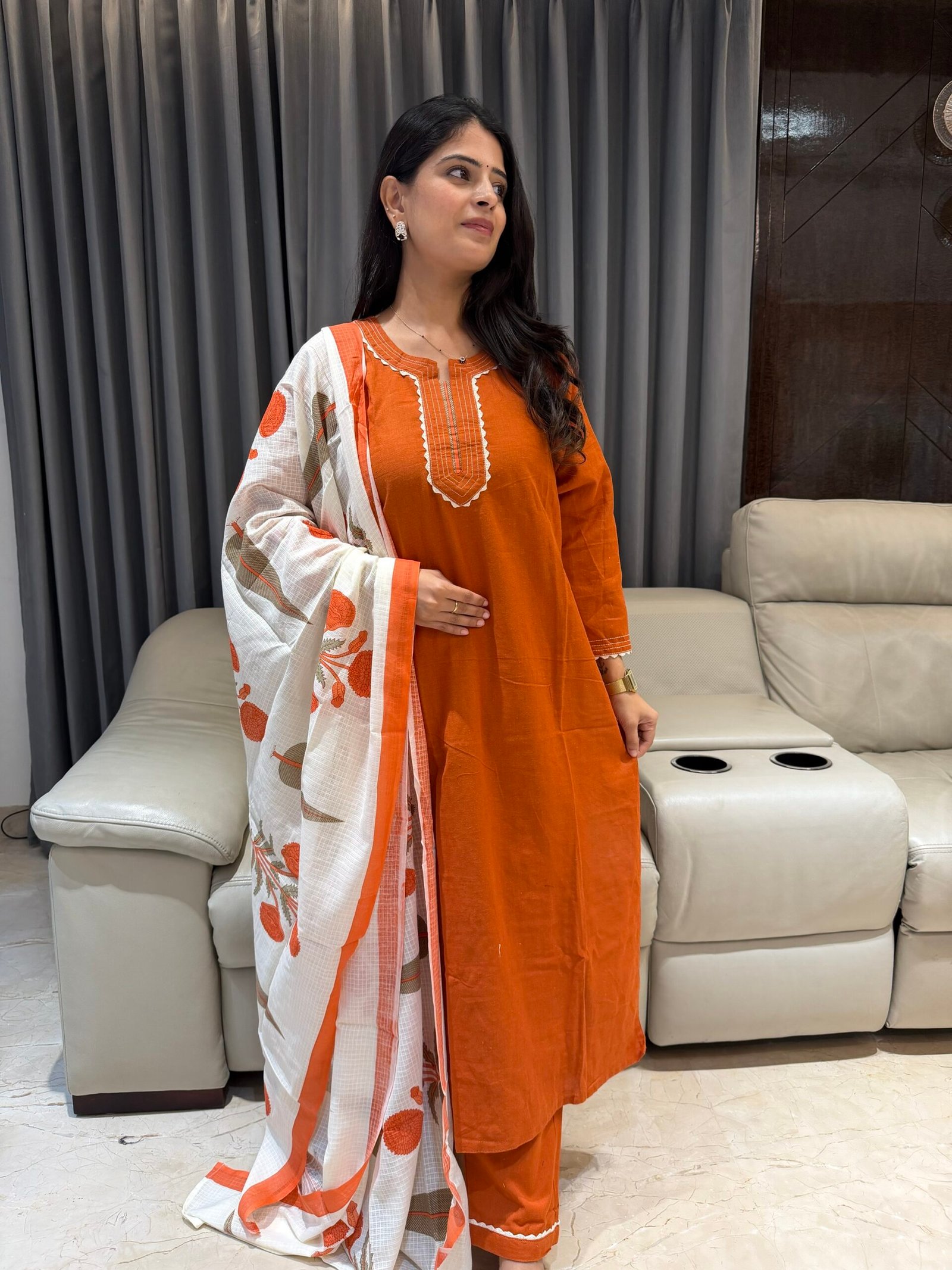 Cotton kurta set with contrast kota duppatta