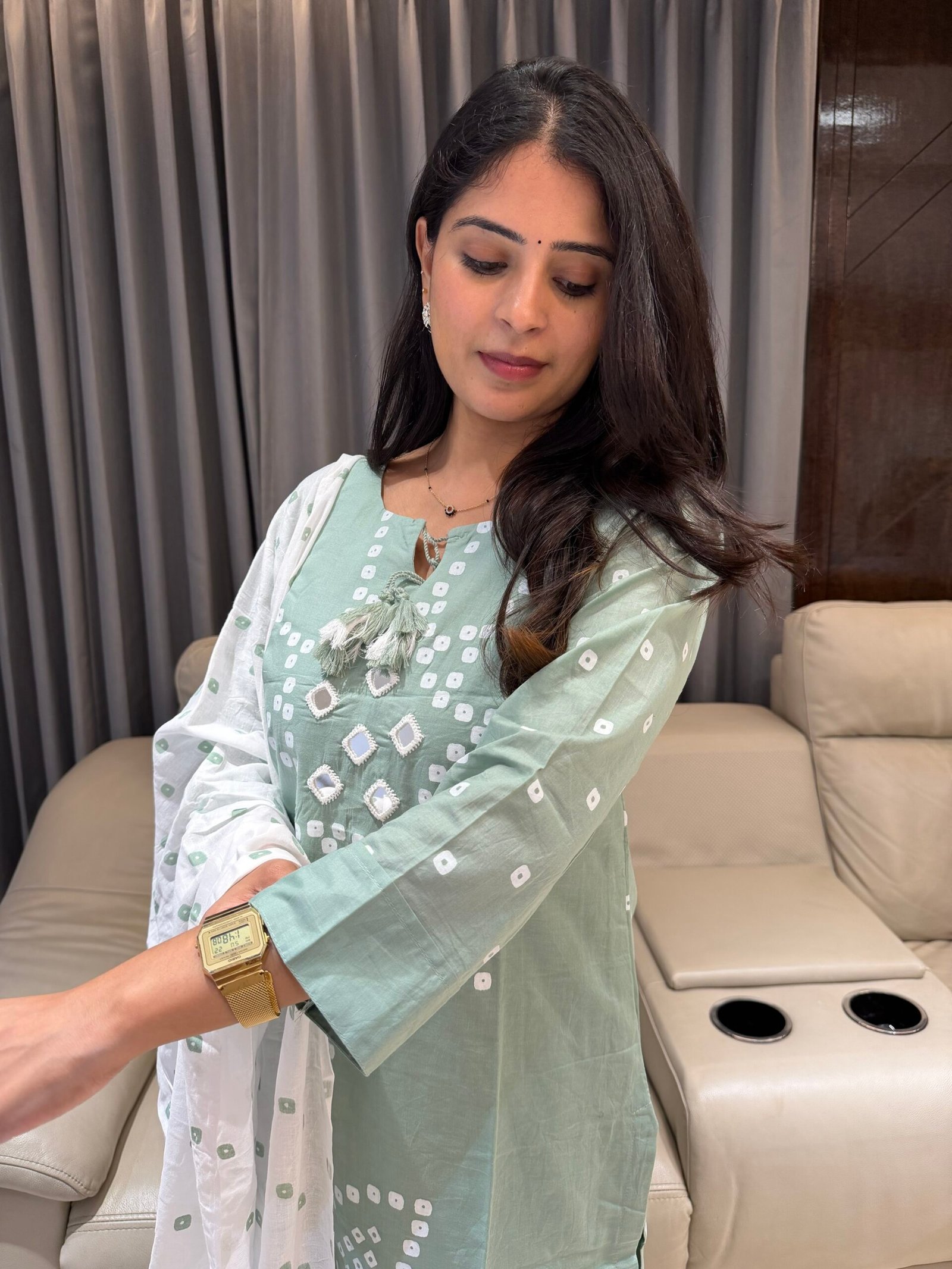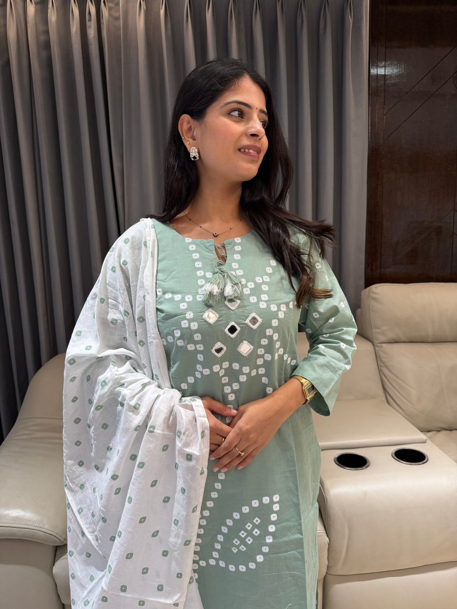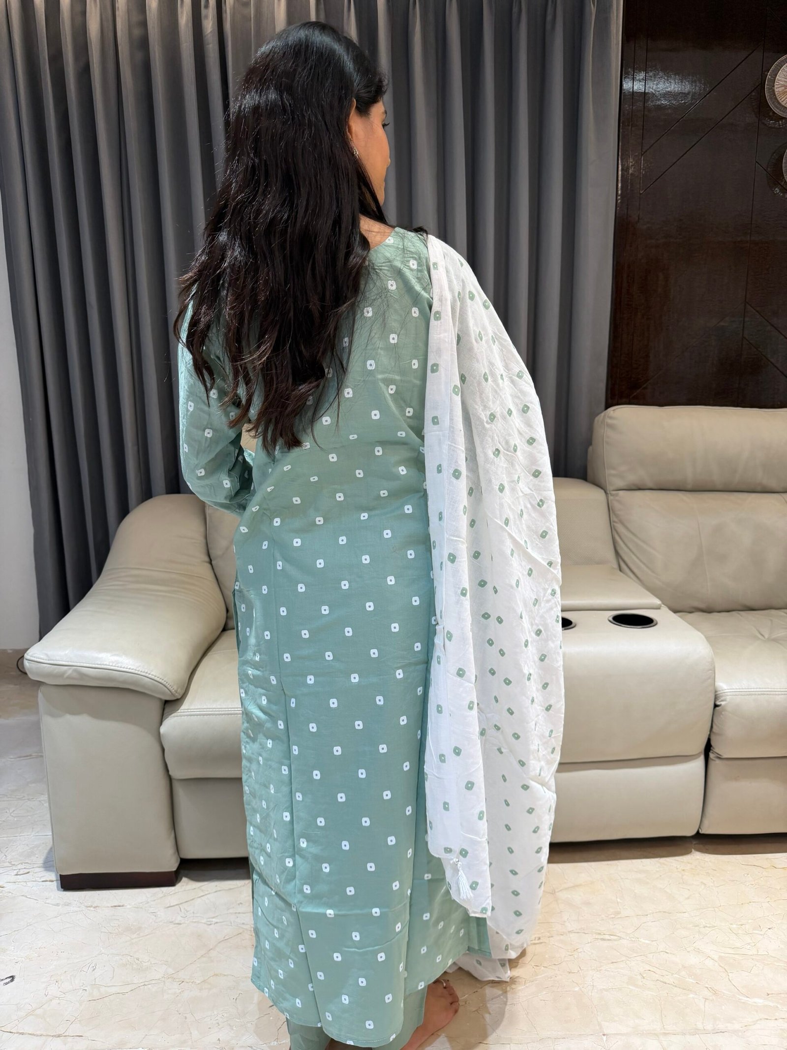 Hand-painted cotton kurta set with contrast dupatta 💚✨ Summer must-have!
