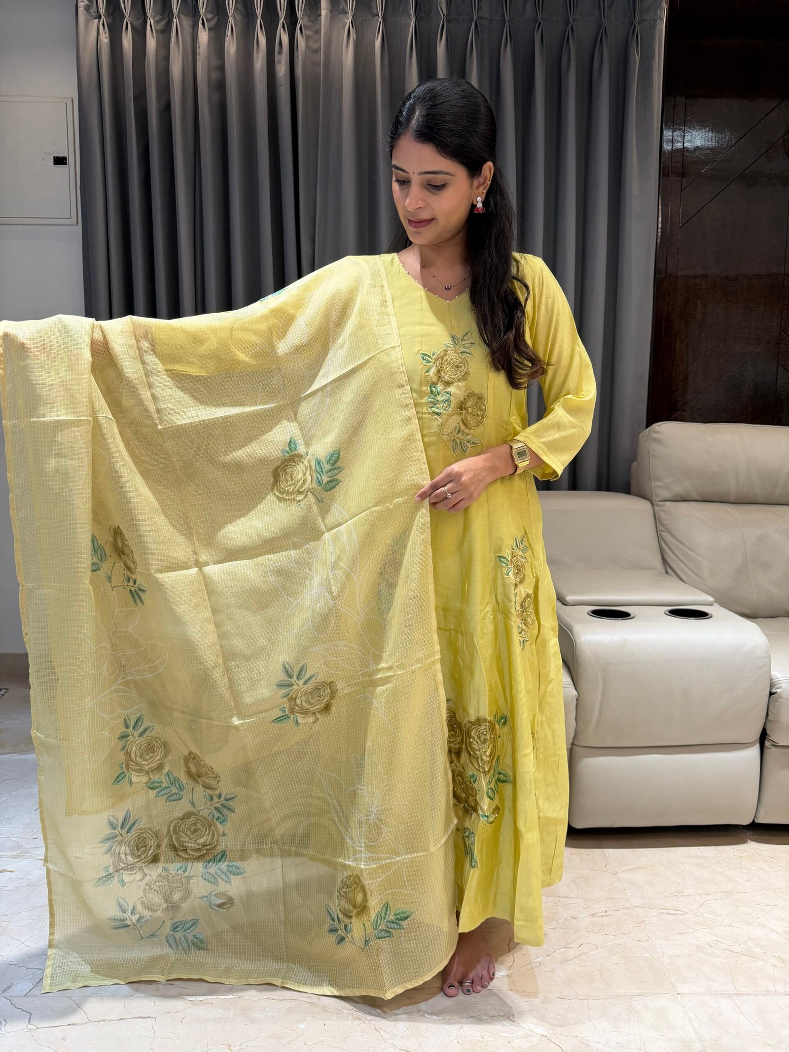 Roman silk kurta set with kota applic work and silk kota Dupatta