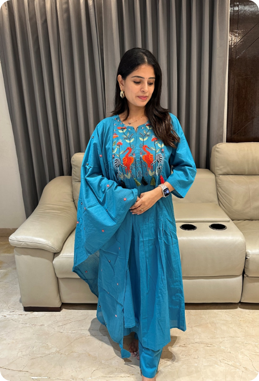 Be the first to review “Mul cotton Anarkali in blue colour with thread work” Cancel reply
