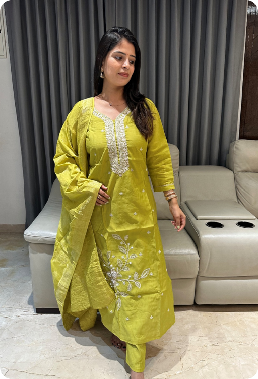 Party wear kurta set with heavy hand work detailings and banarasi dupatta