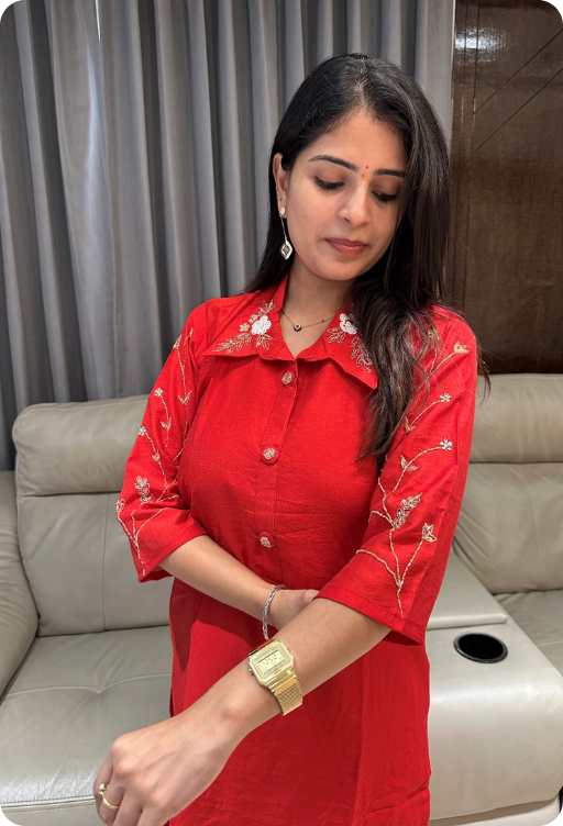 Zardosi hand work kurta and pant coord set in collar neck style
